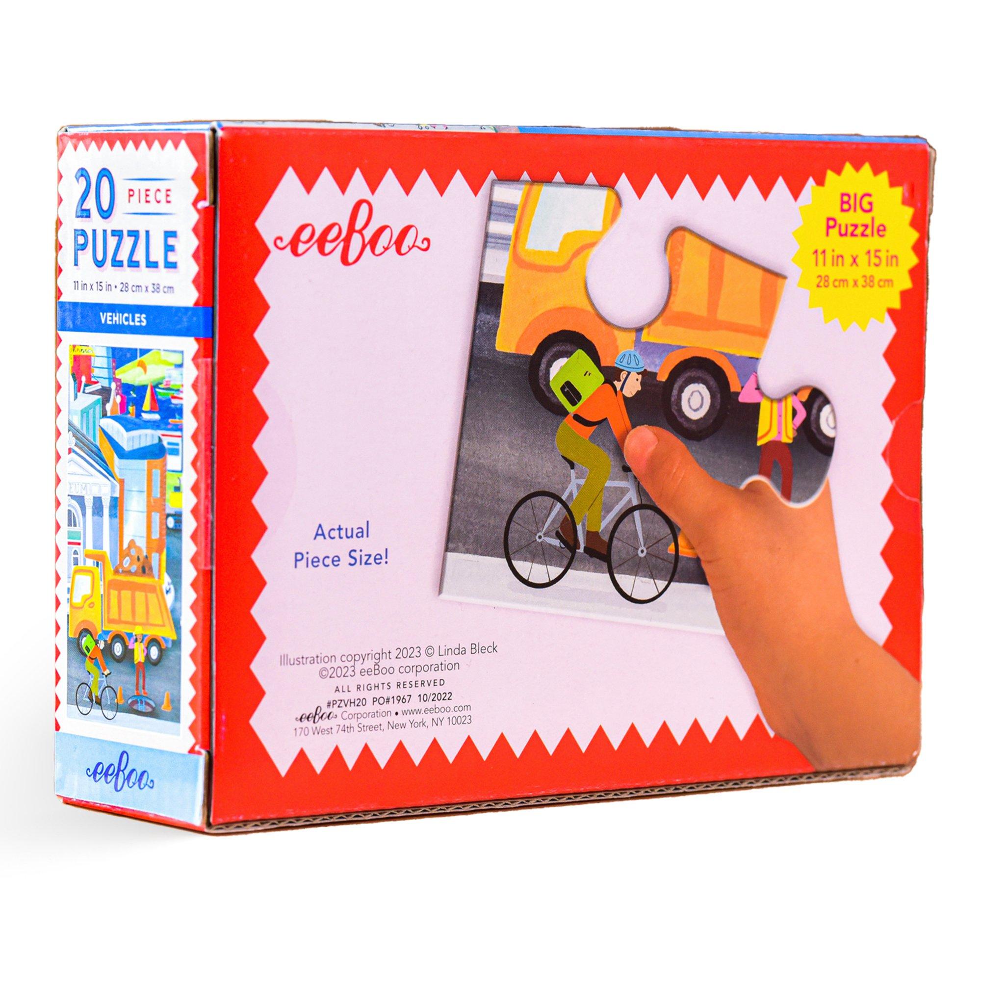 Incredible detail rewards careful looking in this city of vehicles created by artist Linda Bleck. This vehicle themed puzzle has 20 glossy pieces that fit and snap together with ease. It is 15 inches x 11 inches when completed. Skills: Encourages hand-eye coordination, fine motor skills, problem solving, and storytelling & imagination as you discuss the scene. Sustainably Sourced: Made with recycled board and printed on FSC®-certified paper using vegetable-based inks.