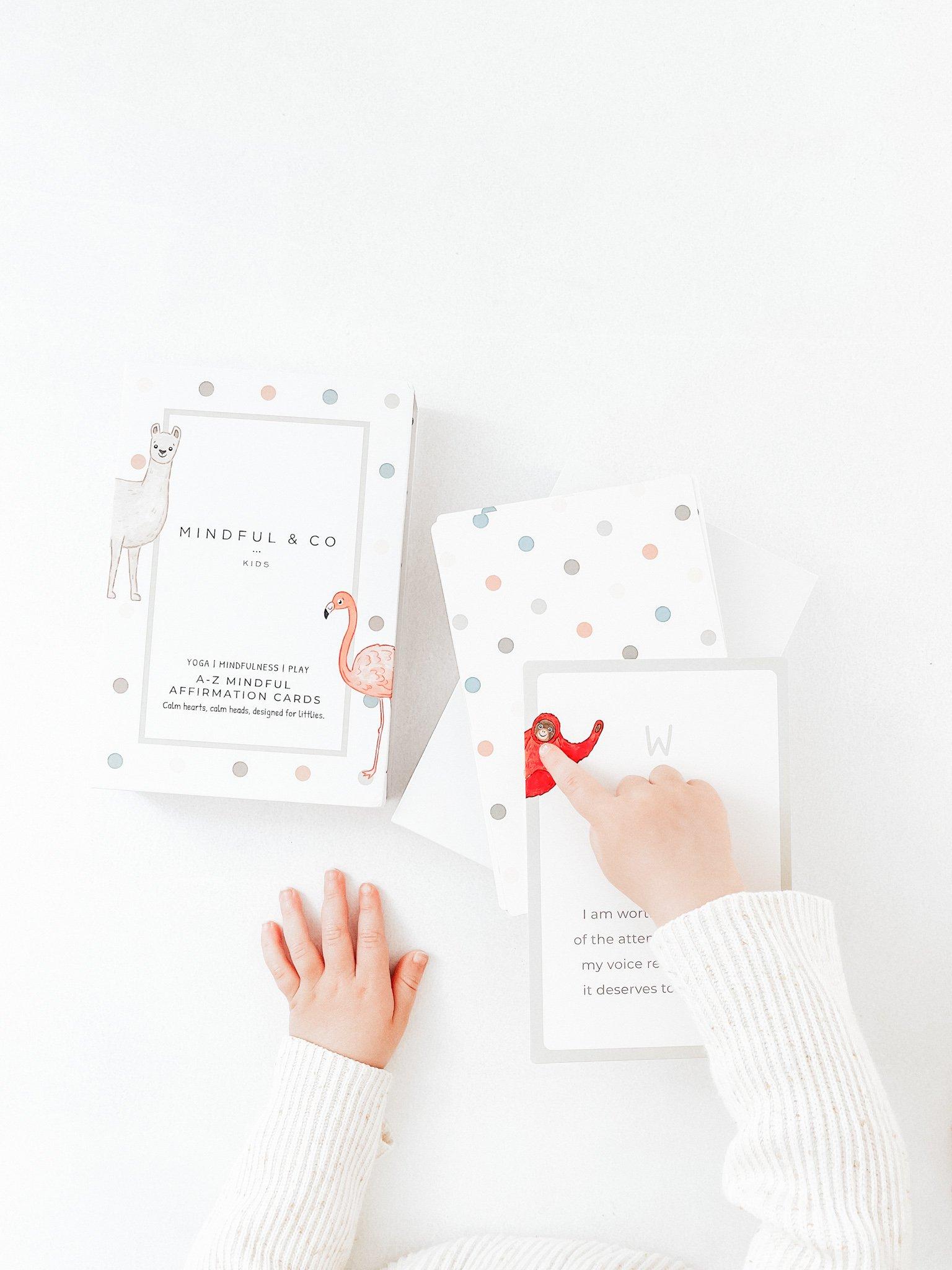 Build confidence, spread positivity and invite joy into your child’s life with these charming A-Z Affirmation Cards by Mindful & Co Kids. The inspiring illustrations and whimsical words will ignite an internal spark within your child that they will carry with them throughout the rest of their lives. Leave these exquisite cards in their lunch box, school bag, overnight bag, or beside their bed to read every night. Or simply ask your little person to select a card each morning and read it together!