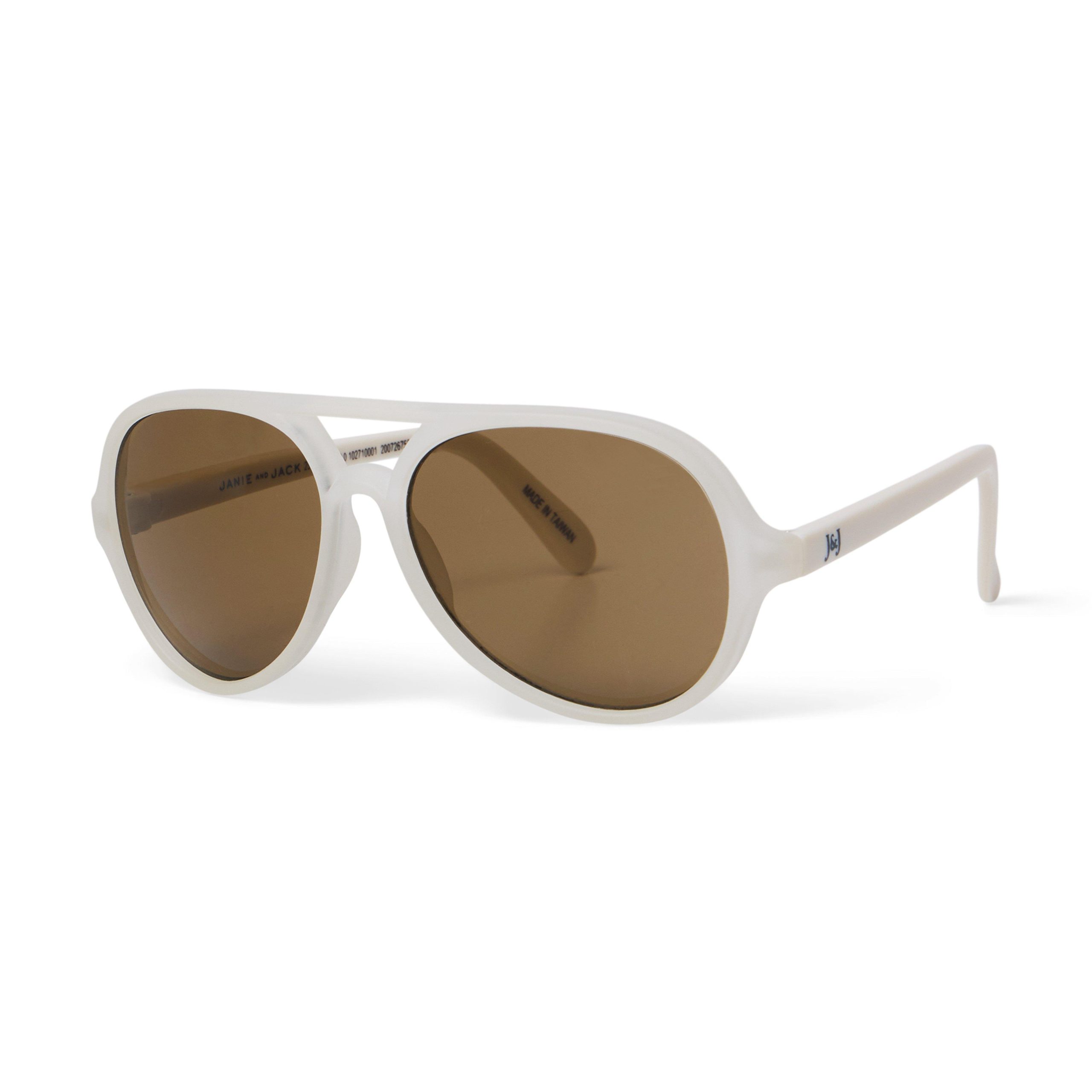 • Add a little cool to any look with our modern take on classic aviator sunglasses. Featuring flexible rubber arms on size 0-2.