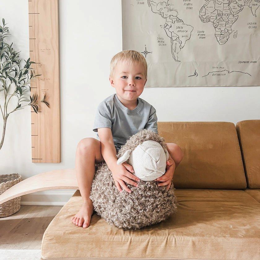 • Say BAA BAA to our new sheep pouf! With a hairy coat, this pouf is perfect for your little ones to ride on to practice balance and climb up upon. Baa Baa Sheep Pouf (Skin Only): Includes just the fluffy pouf skin, allowing you to stuff it with old clothing or soft materials for a personalized, eco-friendly filling.