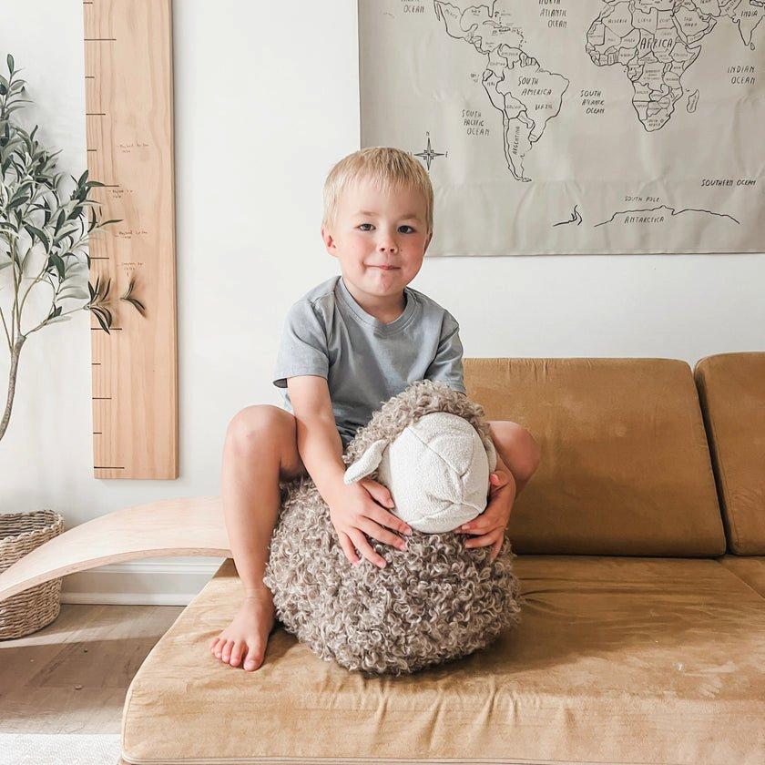• Say BAA BAA to our new sheep pouf! With a hairy coat, this pouf is perfect for your little ones to ride on to practice balance and climb up upon. Baa Baa Sheep Pouf (With Insert): Includes a supportive EPP bean insert, perfect for a comfy seat that lasts as your child grows. Can also be customized with old clothing in the pouf skin for extra comfort and sustainability.