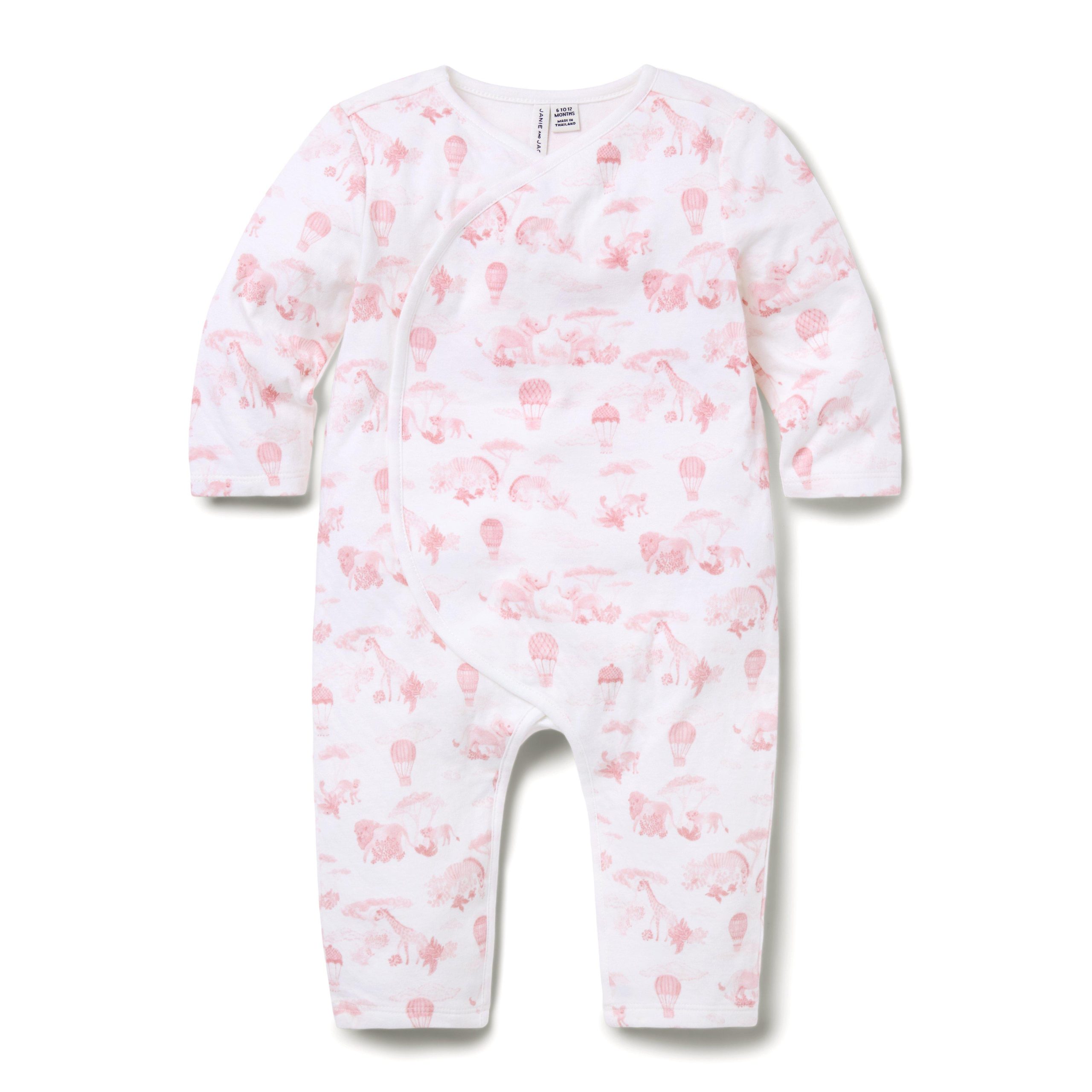 • For those special first moments. Made in pure cotton, our soft one-piece features an animal friends toile and a kimono-inspired wrap.