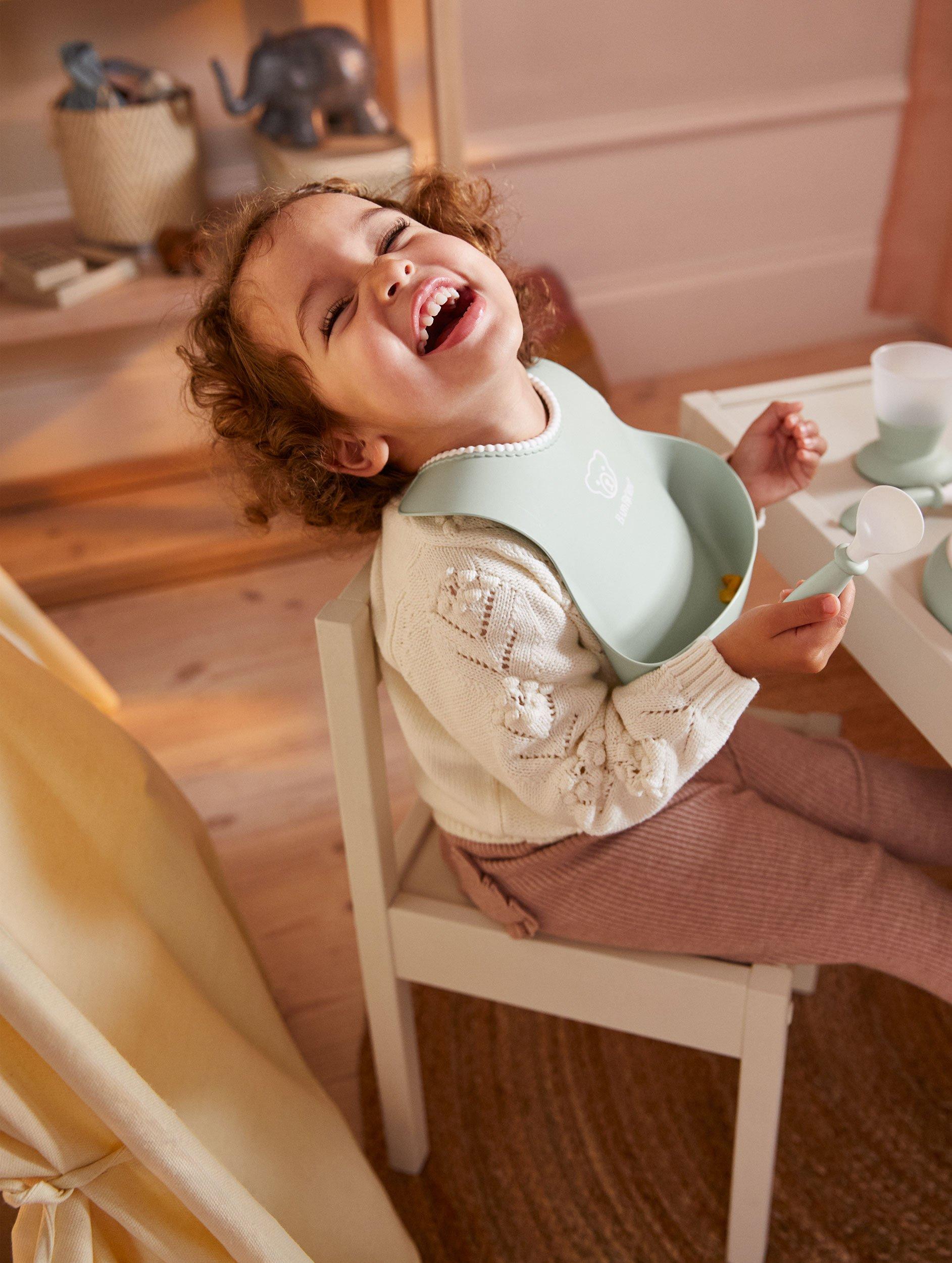 Our baby bib has a soft and comfy neckband that’s easy to adjust as your child grows. It’s made of a water-repellent material that prevents mess and liquid from soaking through to stain clothes. The deep spill pocket also holds its shape, so any food it contains will not be squeezed out by your child’s movements. With a smart pack of 2, you always have a baby bib close at hand. Use one bib at home and pack the other in your nappy bag. Or use one bib while the other is in the dishwasher. Two baby bibs make it easier for you to avoid messy mealtimes.