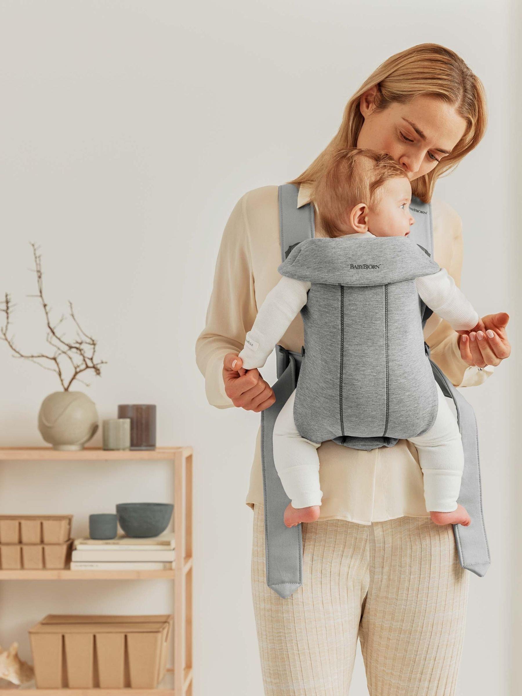 • Your newborn needs a lot of closeness during the early days, both day and night. BabyBjorn Baby Carrier Mini is a small, easy to-use baby carrier that you can quickly put on and take off unaided. It’s perfect for carrying your newborn for short sessions to comfort them while keeping your hands free for other things. If your baby falls asleep in the baby carrier, you can easily open the entire front section to lift your baby out without waking them. This carrier is suitable for use with babies from 7 lbs up to 24 lbs.