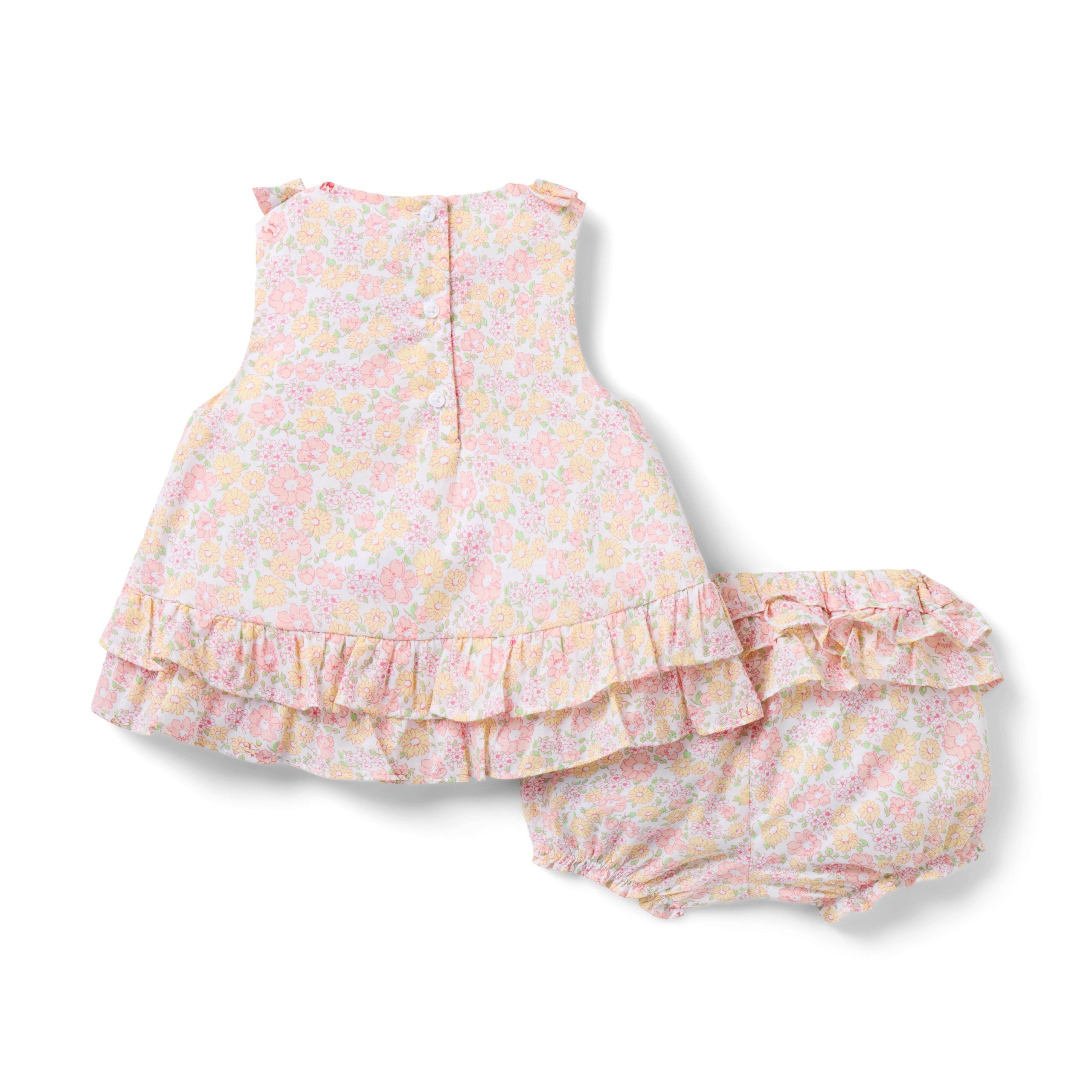 • Ditsy florals pair perfectly with every first moment. Designed in pure cotton, this set features bows at the shoulders and ruffle details too.