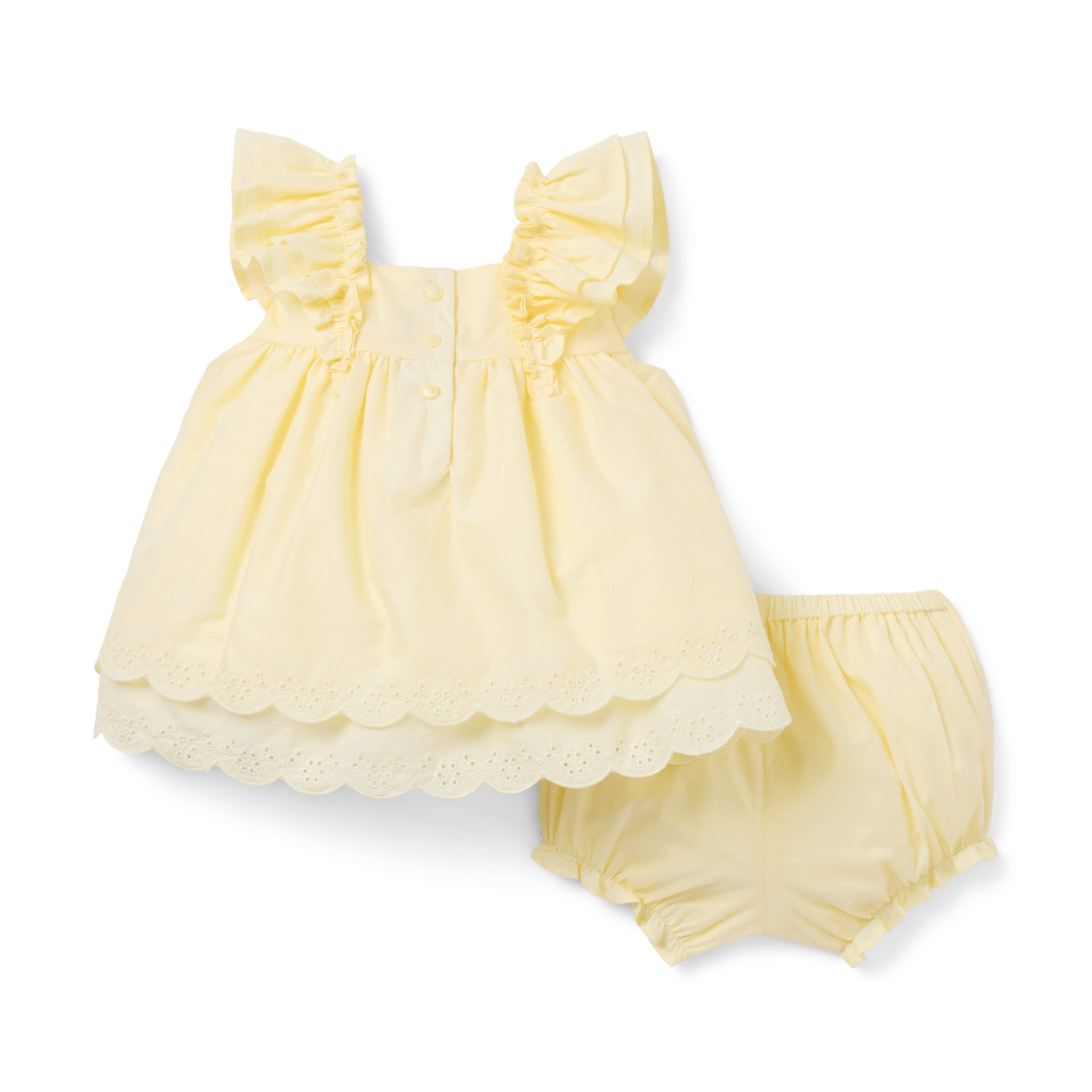 • It’s a match for every spring occasion in our scalloped trim set. Featuring ruffle sleeves and eyelet details too. Just add a sunny day.