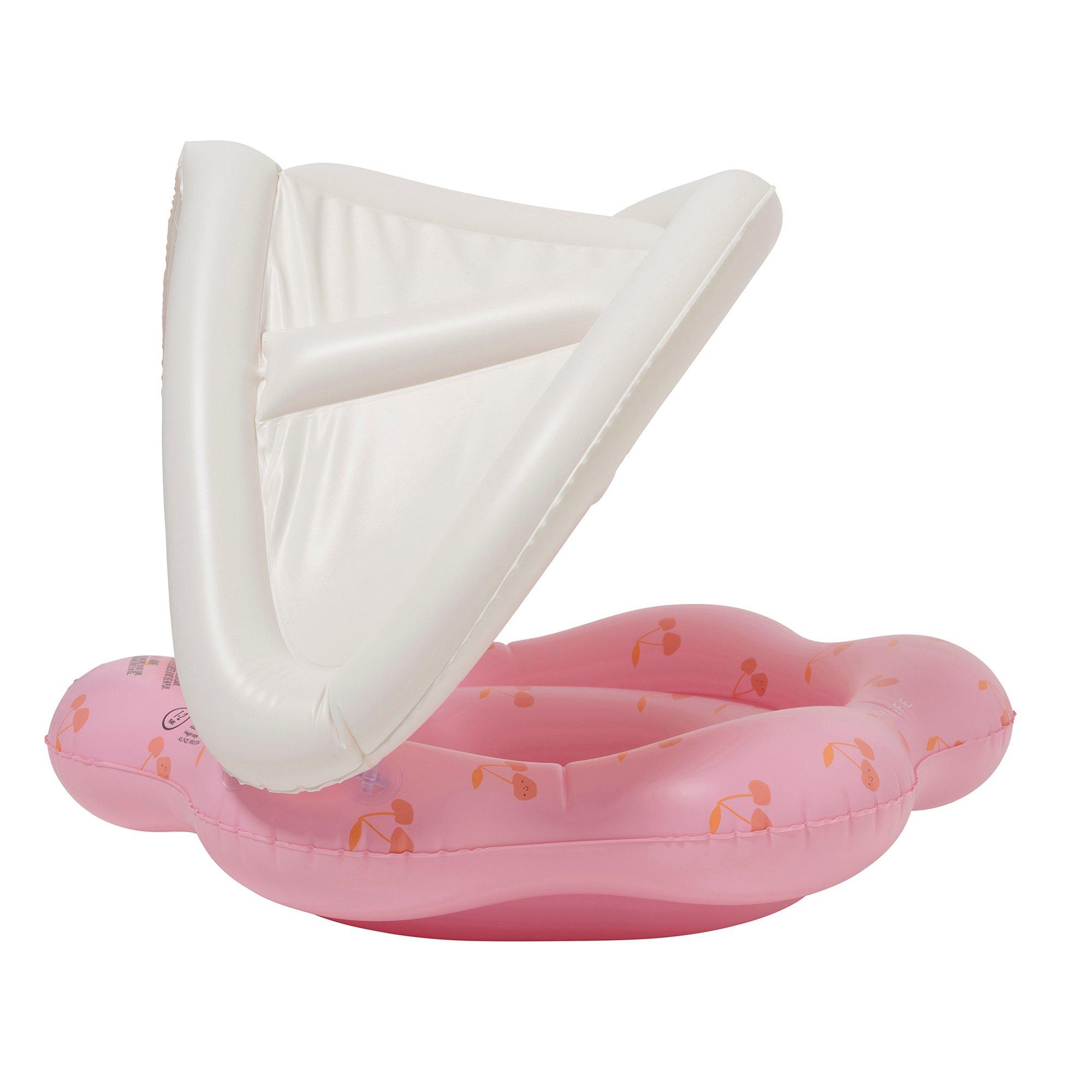 • Flower-shaped inflatable pool float with cherry graphics, pink and white color wave. Perfect for babies aged 1+, this float helps build water confidence while providing a fun and safe experience in the water. The float is designed with a headrest and soft leg supports for added comfort, and it includes a removable canopy to provide shade on sunny days. With its durable, non-toxic PVC material, this baby float ensures safe and enjoyable water adventures all summer long. Bub will be splish-splashing all summer long. This collection is the cherry on top to your little one’s summer featuring a burst of cherry prints and candy pink. Sprinkle the magic of summer and inspire little one’s water confidence with our most whimsical collection yet.