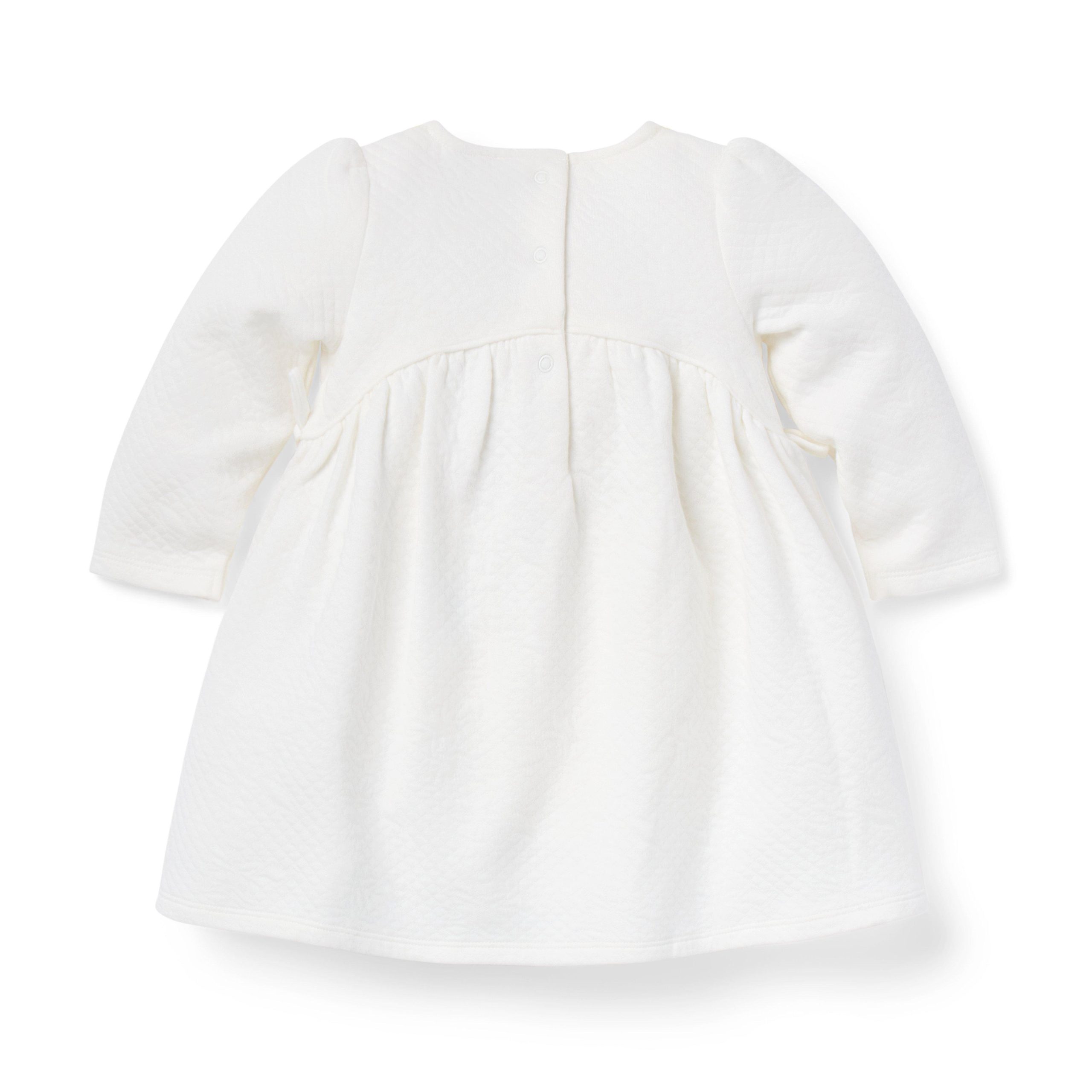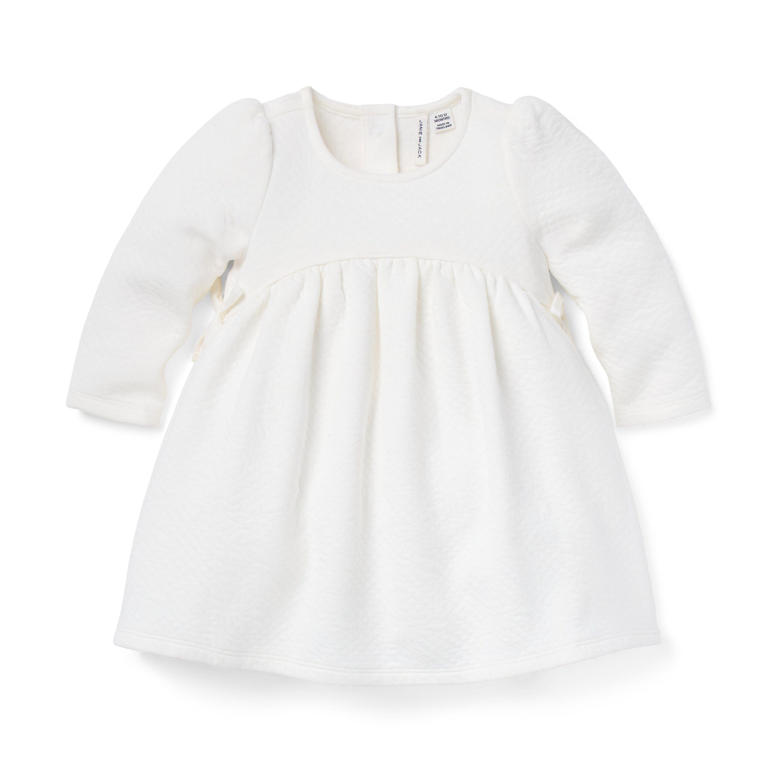 • For best-dressed first moments, reach for this dress in pure cotton. We love the allover floral quilting, little bow details and piped trim.
