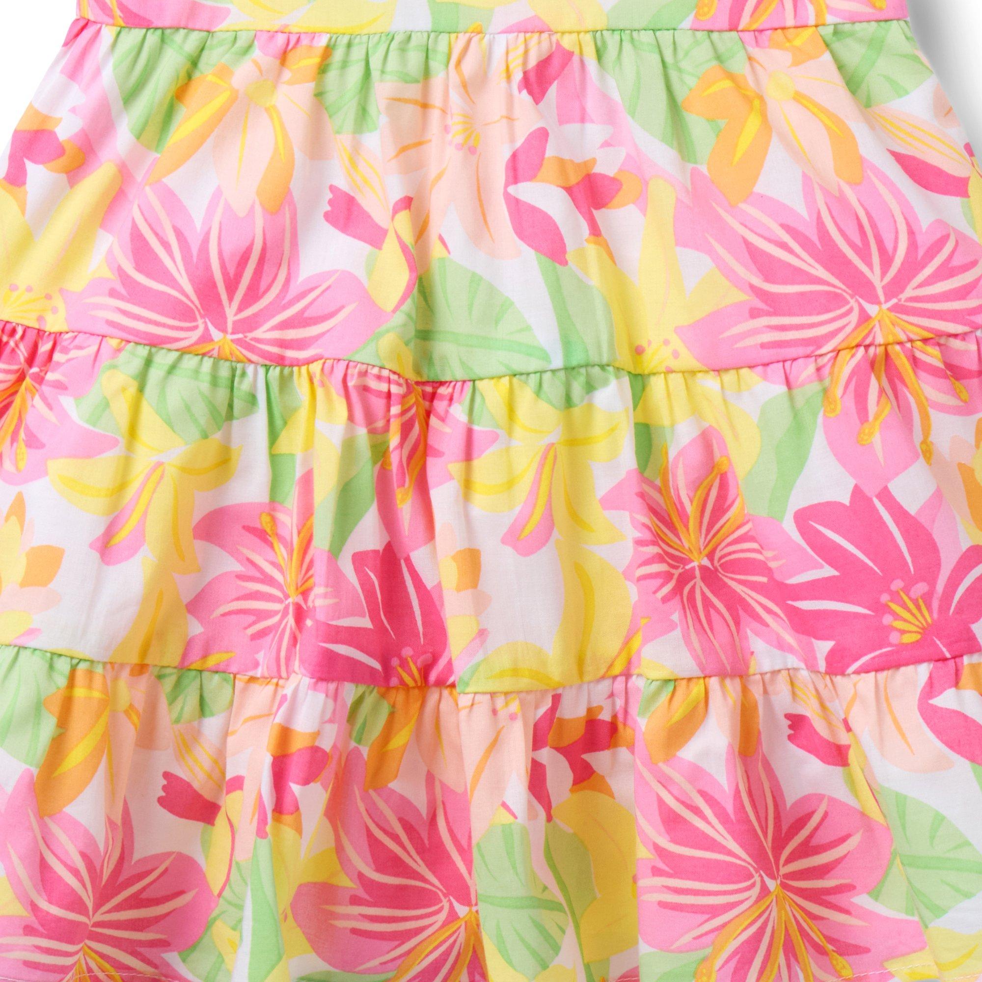 • We love this floral favorite for first vacations or just because. In pure cotton with a tiered silhouette, a ruffle at the neck and crossback straps.