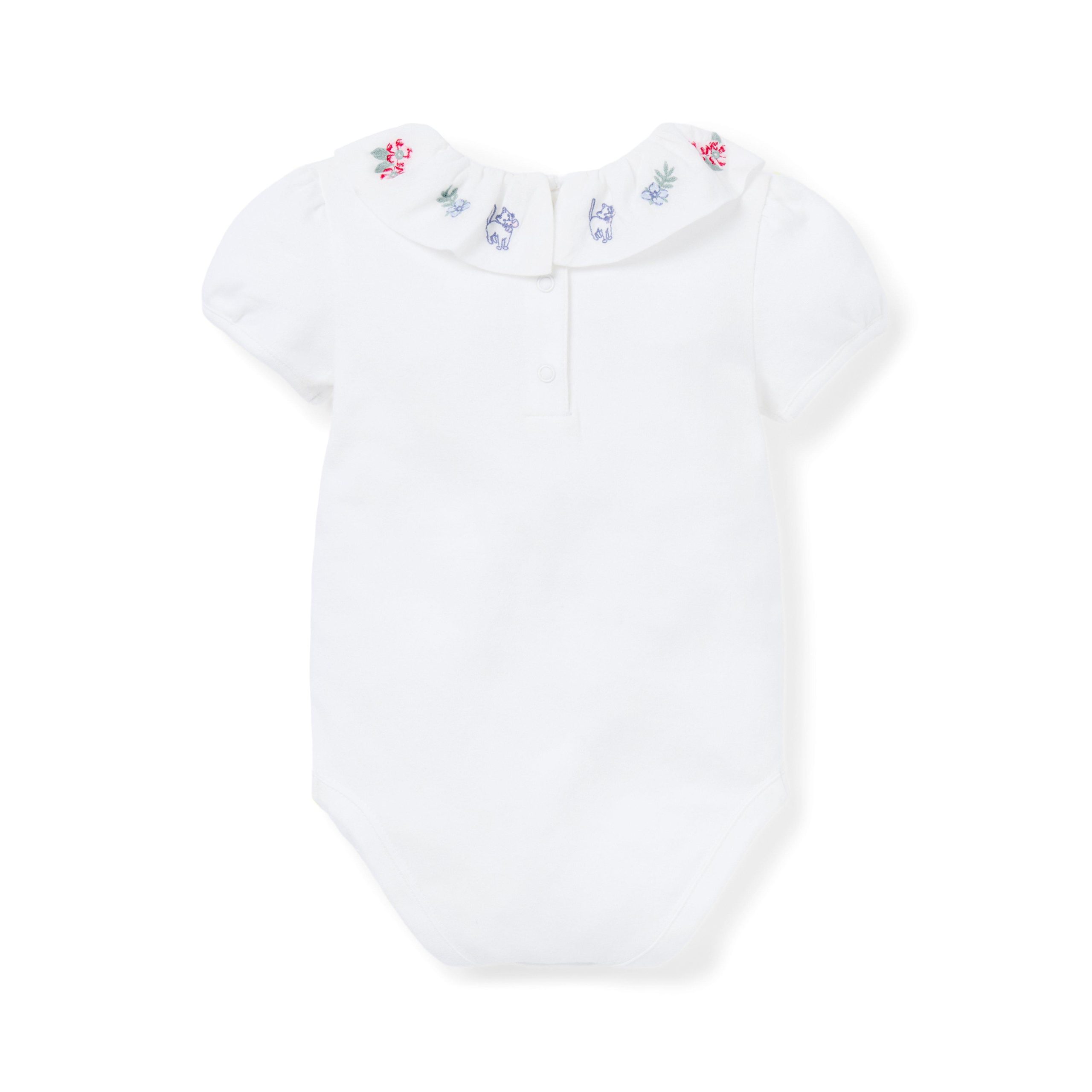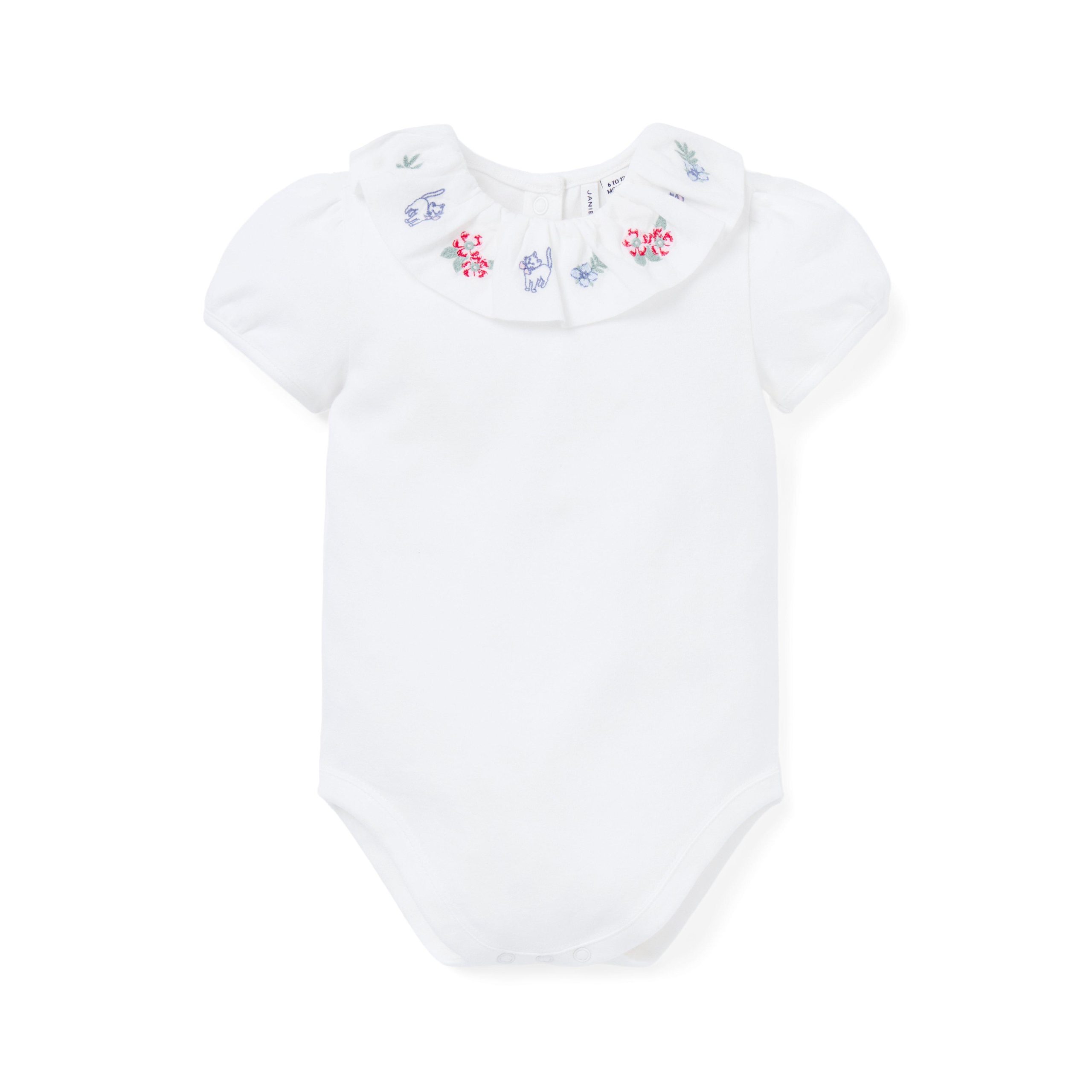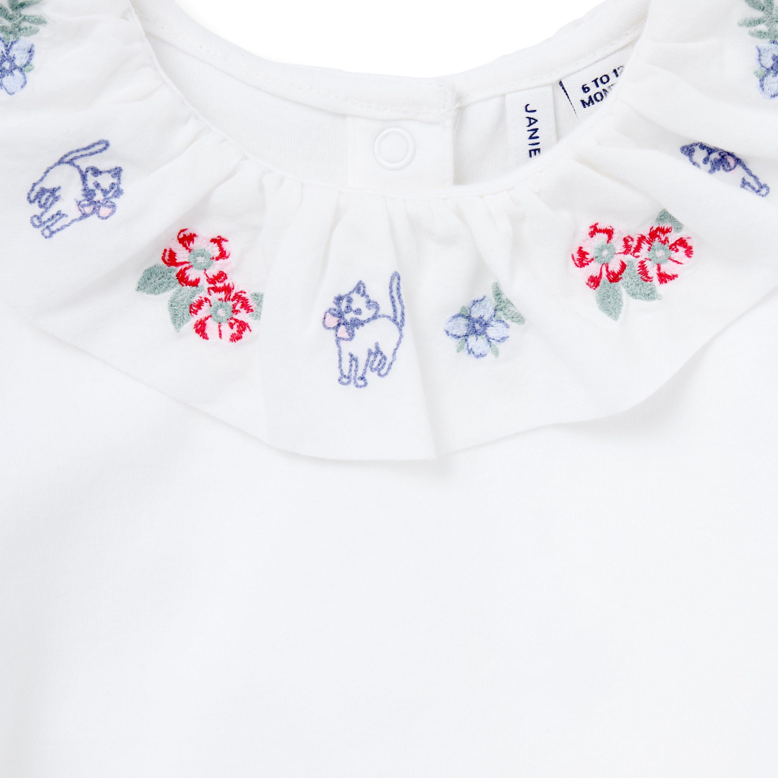 • Kittens and flowers make our bodysuit extra special for every first. In pure, soft cotton with an embroidered ruffle collar and puff sleeves.