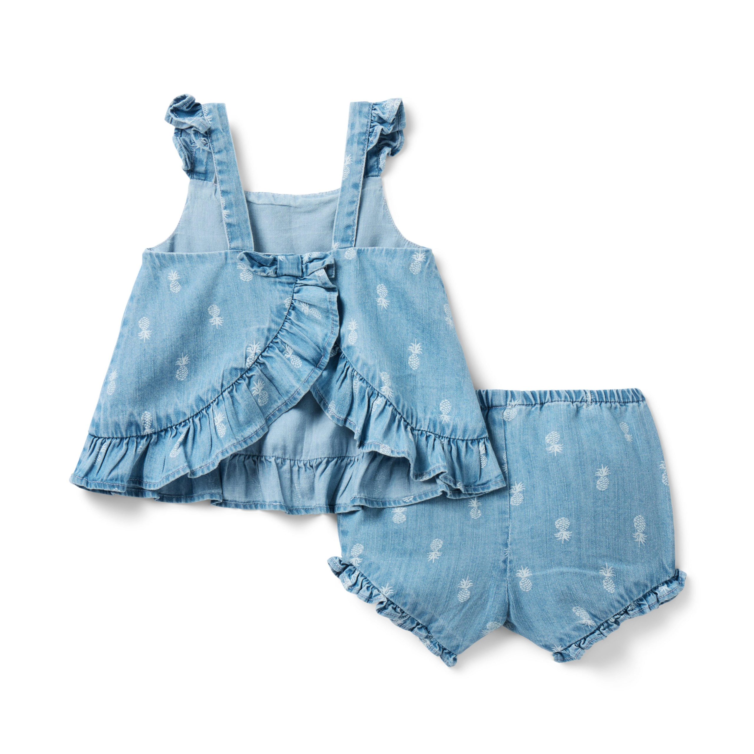 • Our pineapple print set makes matching moments extra sweet. In pure cotton chambray with ruffles, flutter sleeves and a bow, of course.