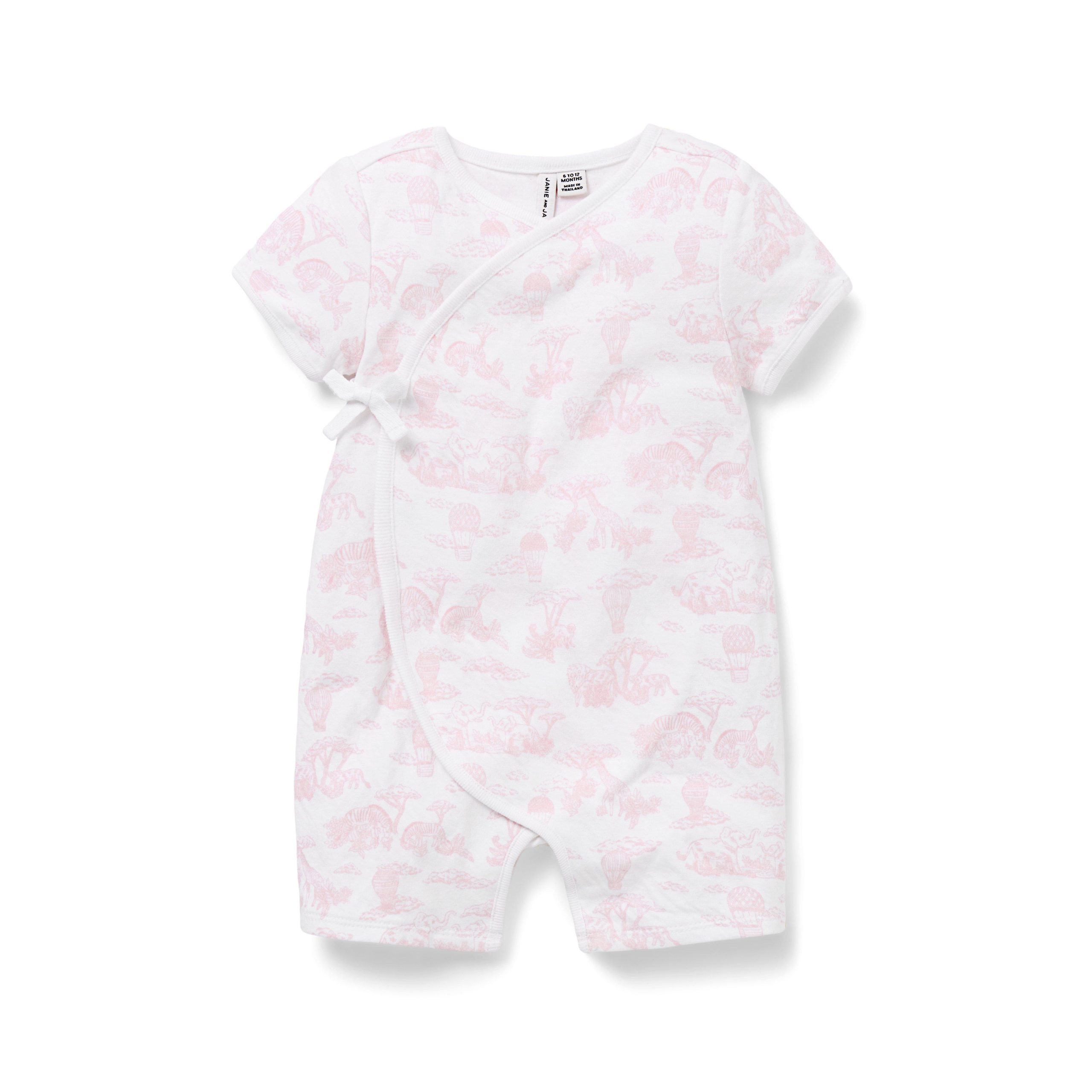 • An instant favorite for first moments. Our romper in soft, pure cotton features a safari toile and an easy wrap silhouette too.