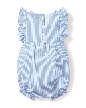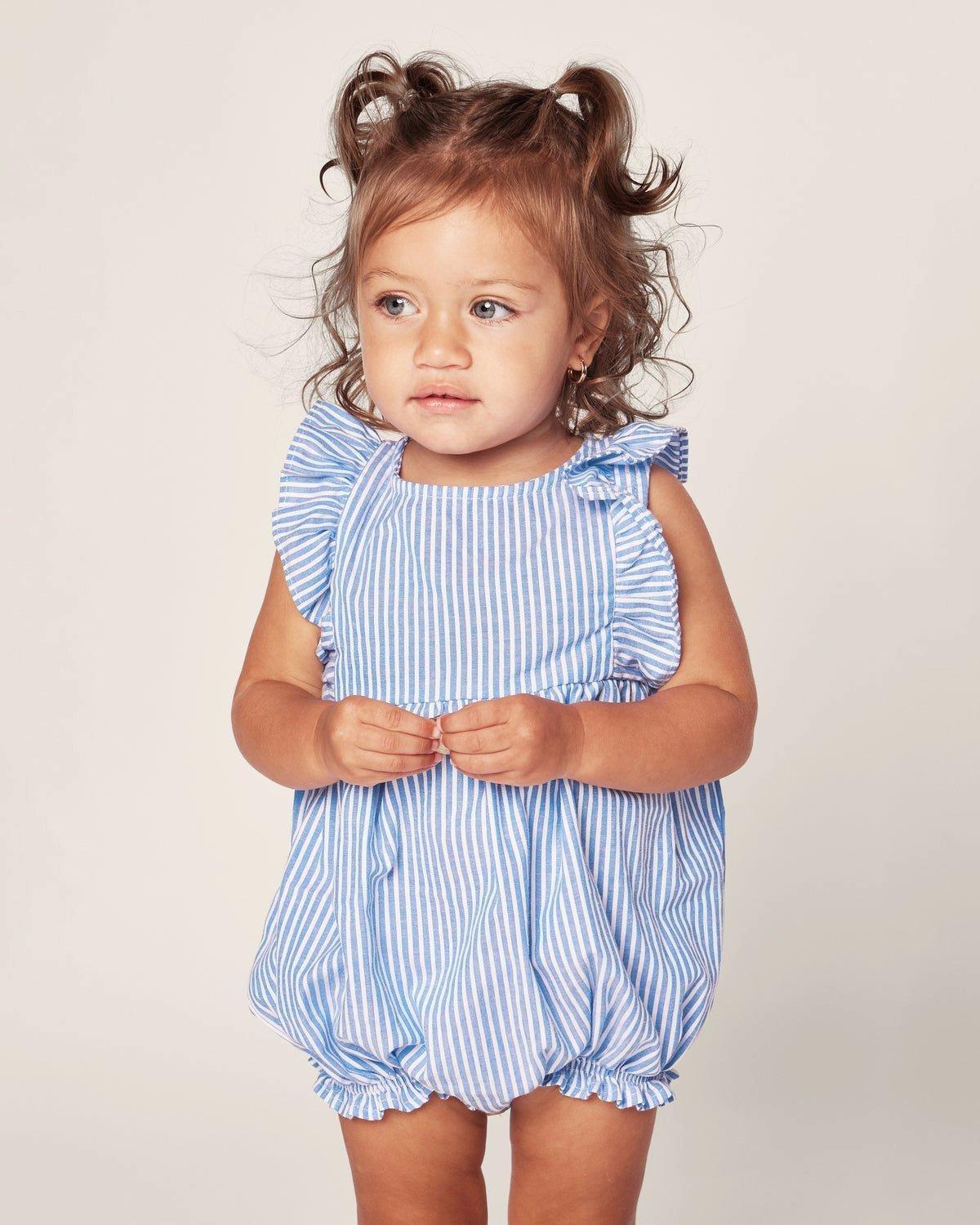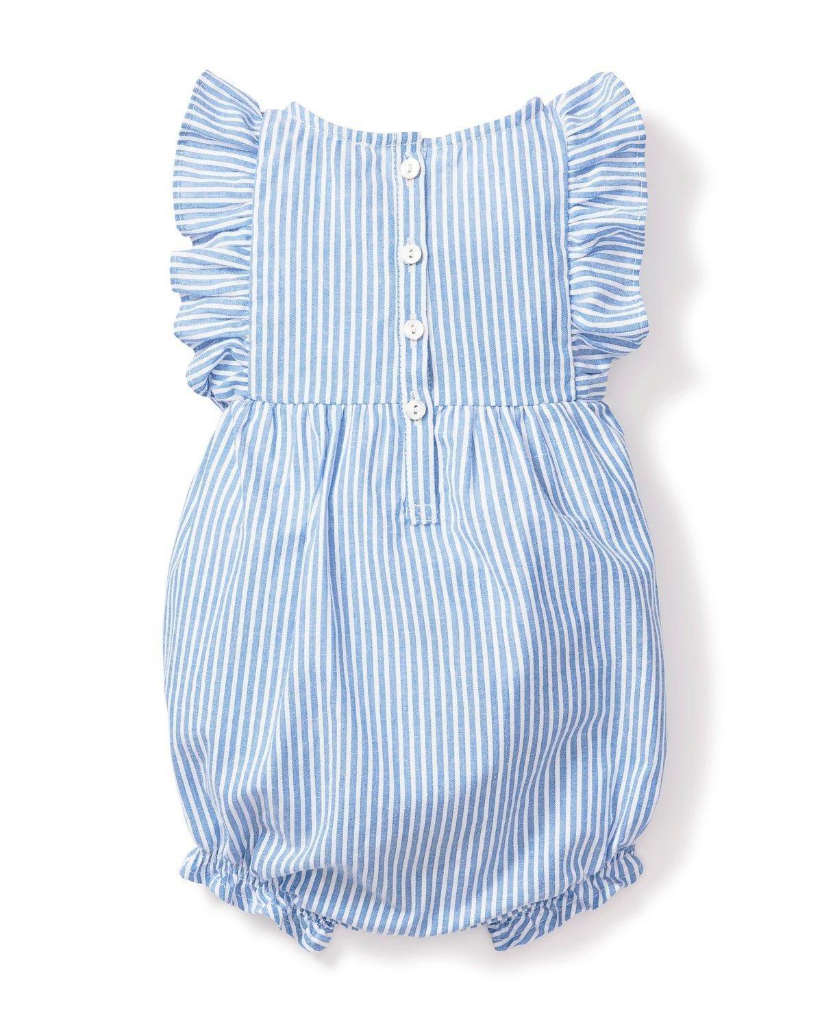 • Baby's Twill Ruffled Romper in French Blue Seersucker