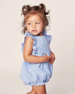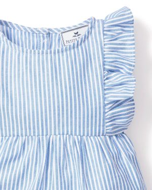 Baby’s Twill Ruffled Romper in French Blue Seersucker