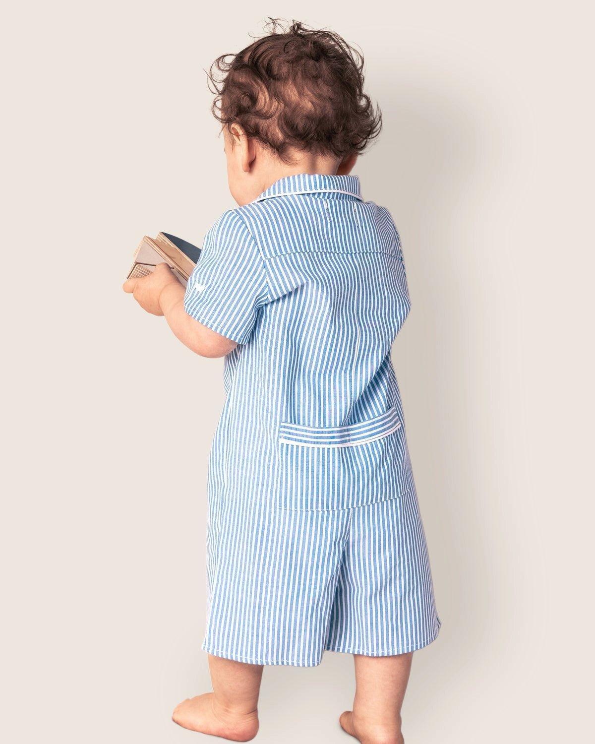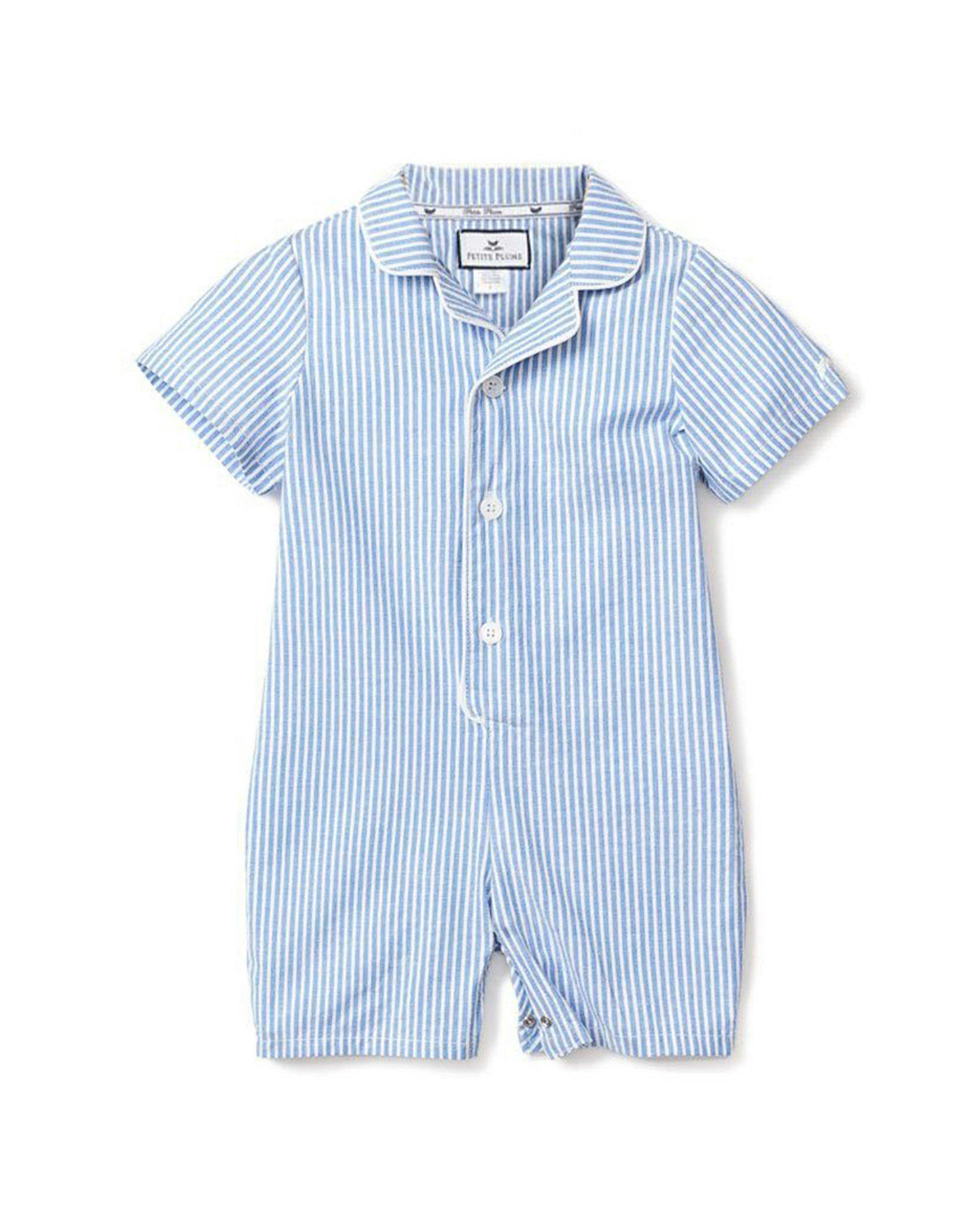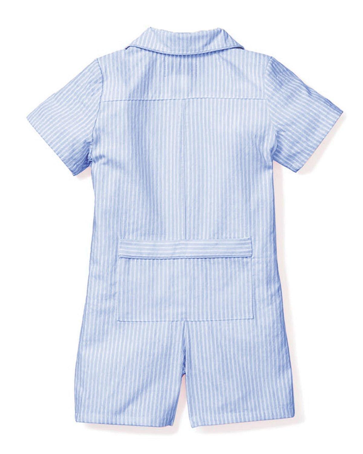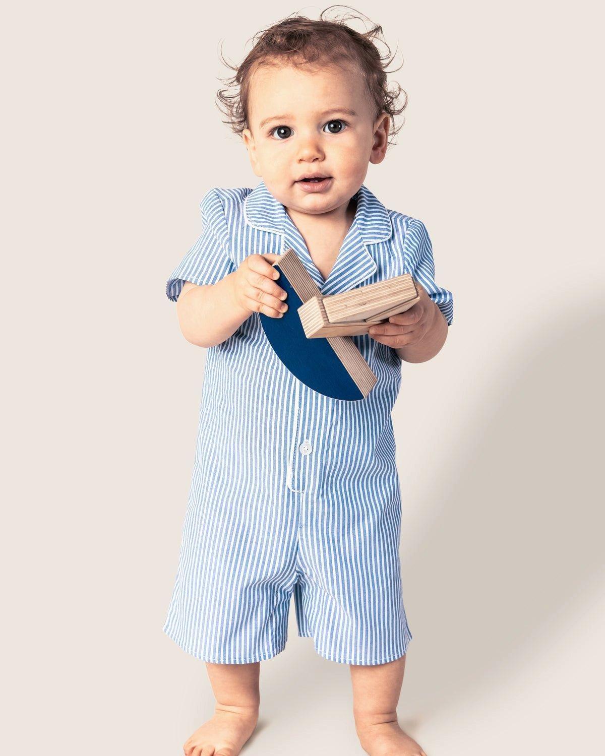 Baby’s Twill Summer Romper in French Blue Seersucker