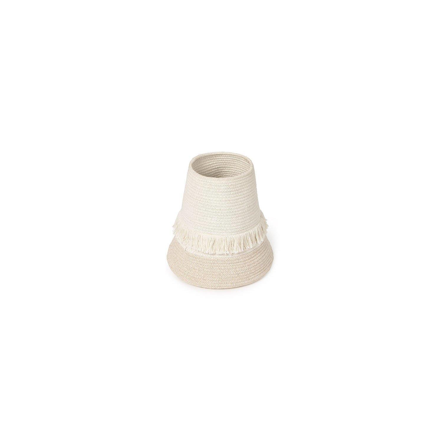 The braided cord is filled with fibers from recycled PET bottles, dyed and blended with our cotton, adds structure and durability to the basket.