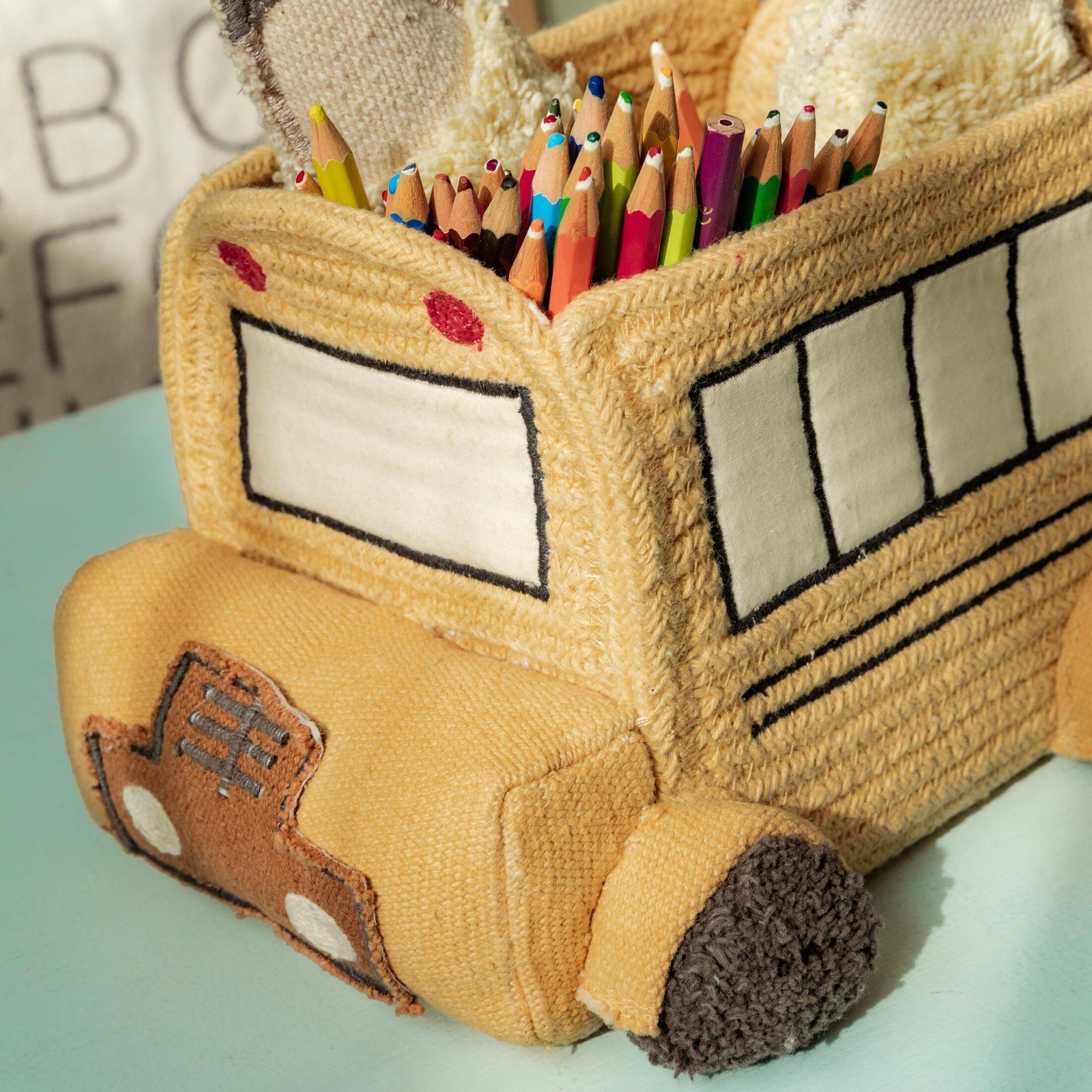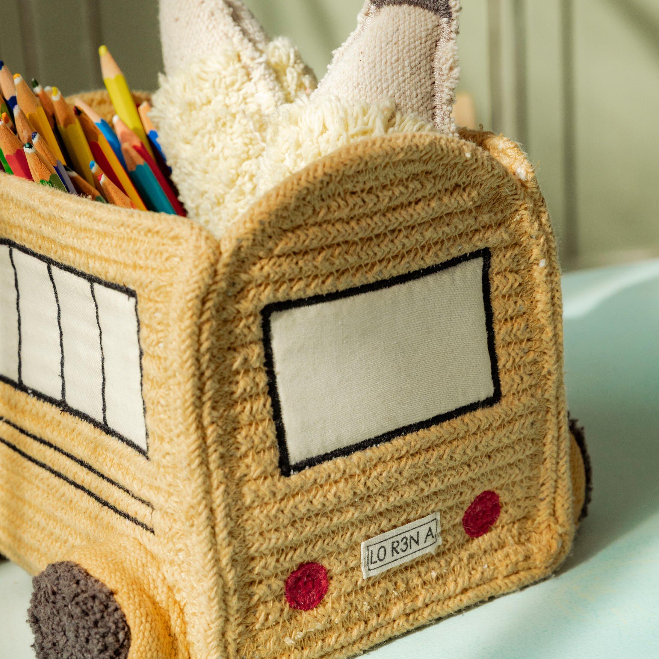 • Carefully handcrafted, this unique bus-shaped basket is made of four hand-sewn pieces that form a structured square shape.