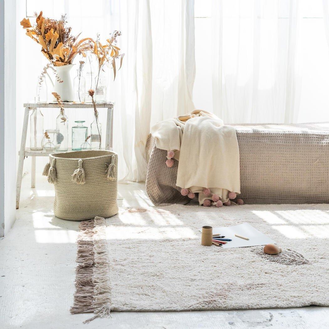 This is a unique artisan piece, carefully designed by Lorena Canals and sustainably handcrafted in our own factory using natural fibers and upcycled materials, non-toxic dyes, and a firm commitment to the planet and people. From the design process, to material sourcing and production, we always choose options that minimize waste and ensure long-lasting designs.