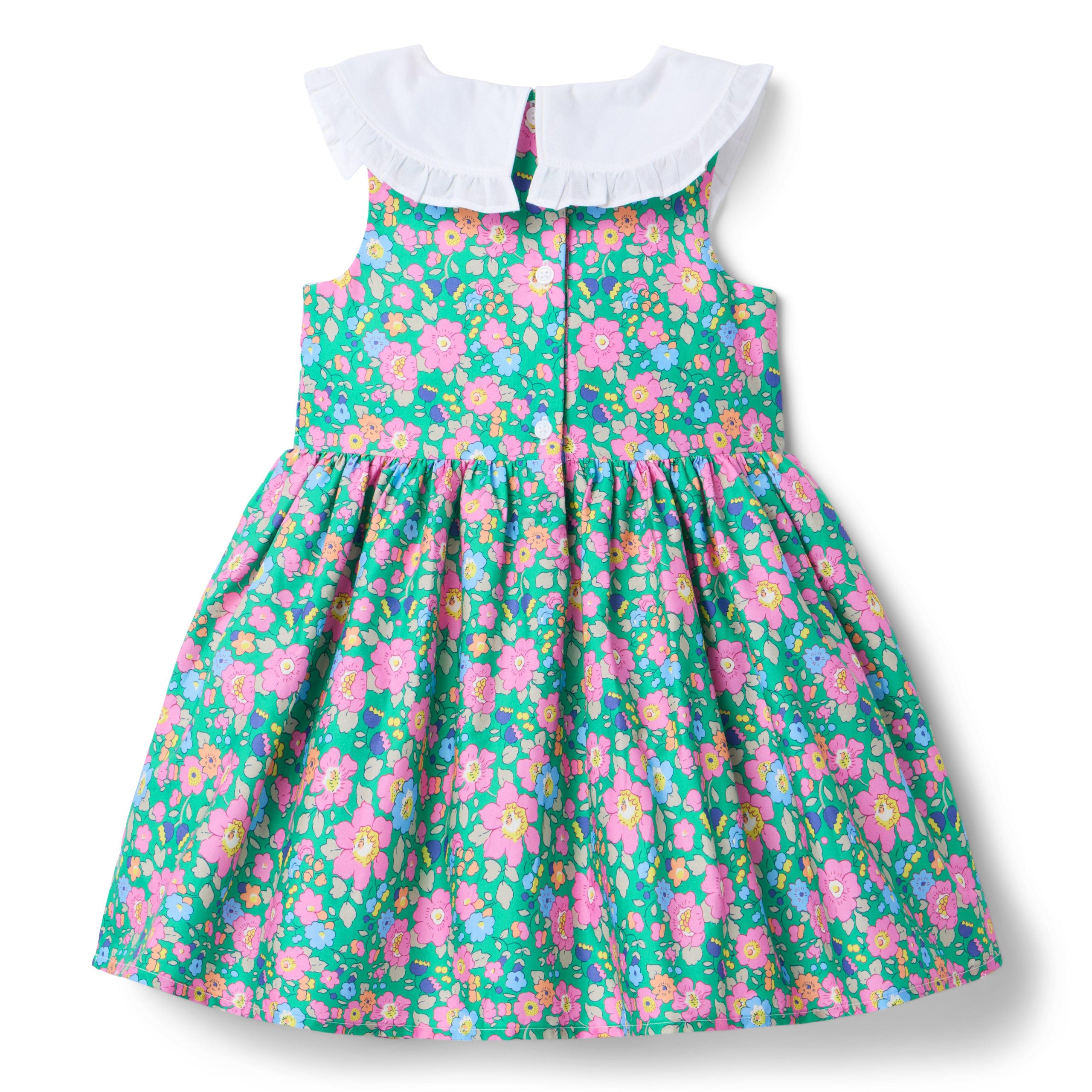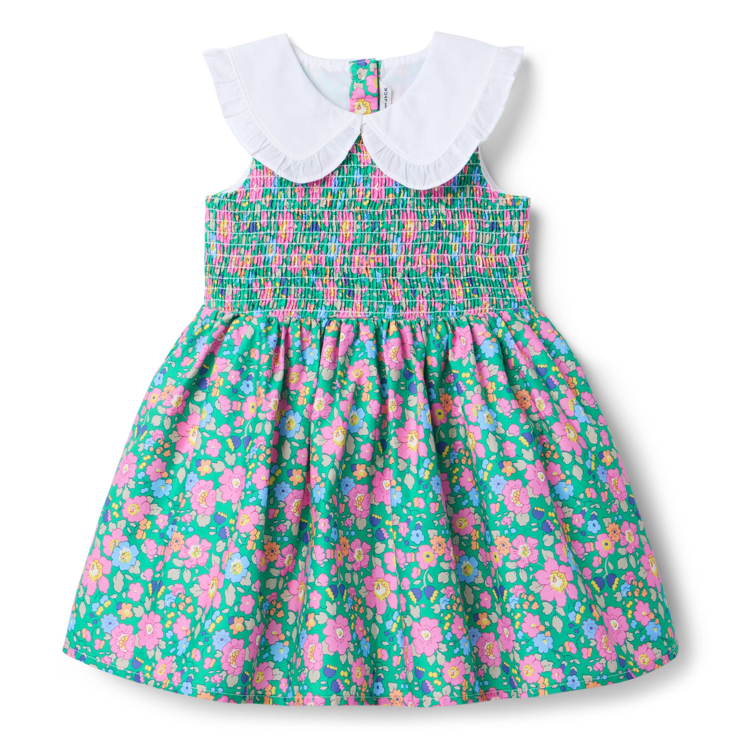 • Made with love. Made with Liberty Fabric. This perennial pick gets a dose of British charm with an iconic floral from Liberty London. A ruffle-trimmed collar and smocking make it even more special.