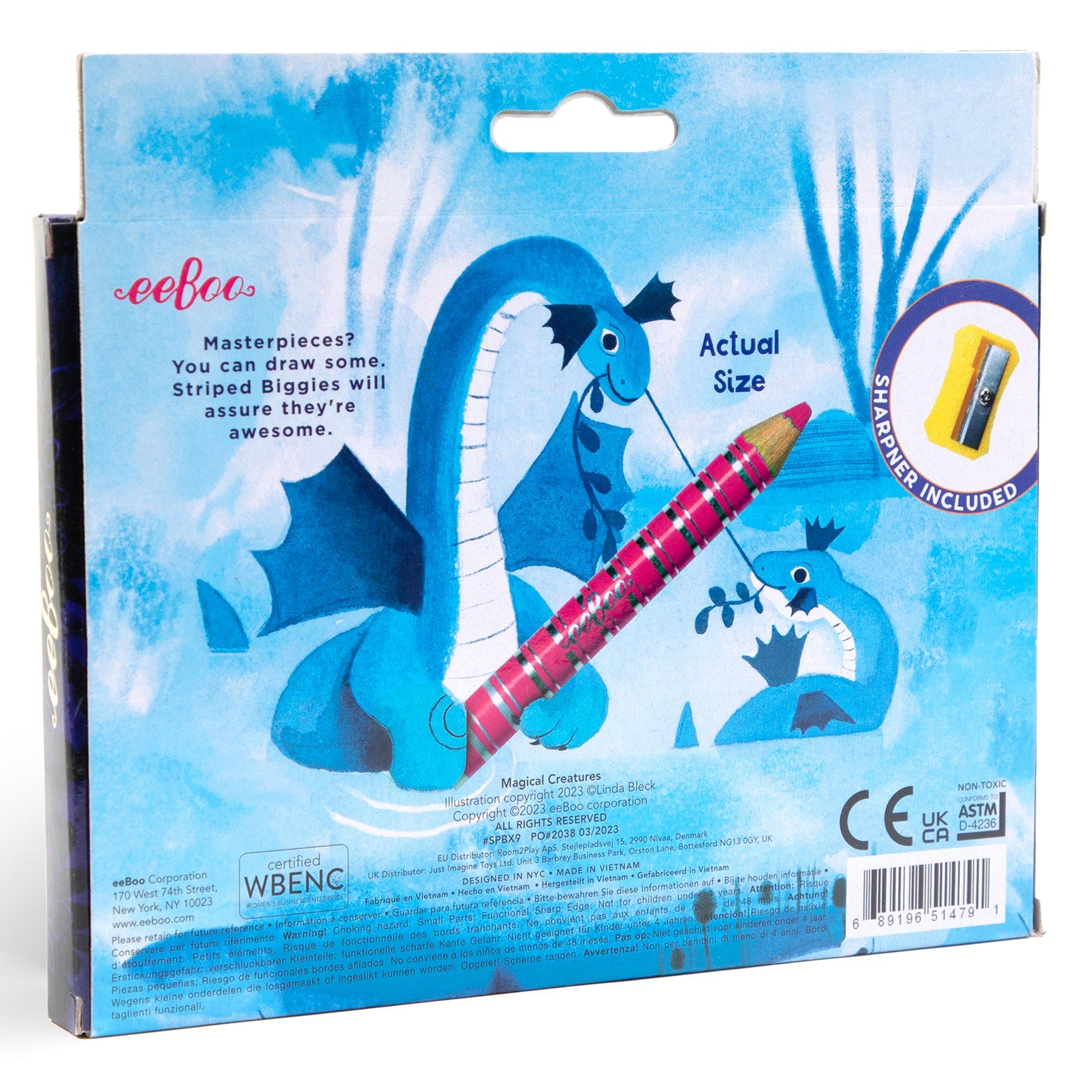 Set of 12, pleasing chunky pencils with high-quality and vibrant colors. Masterpieces? You can draw some. Striped Biggies will ensure they’re awesome! Biggies make for a great gift for holidays, birthdays or a just because. Kids will love having these chunky pencils as a part of their art kit, school supplies and coloring arsenal. Your imagination is the only limit. Provides and encourages hands-on screen-free fun!