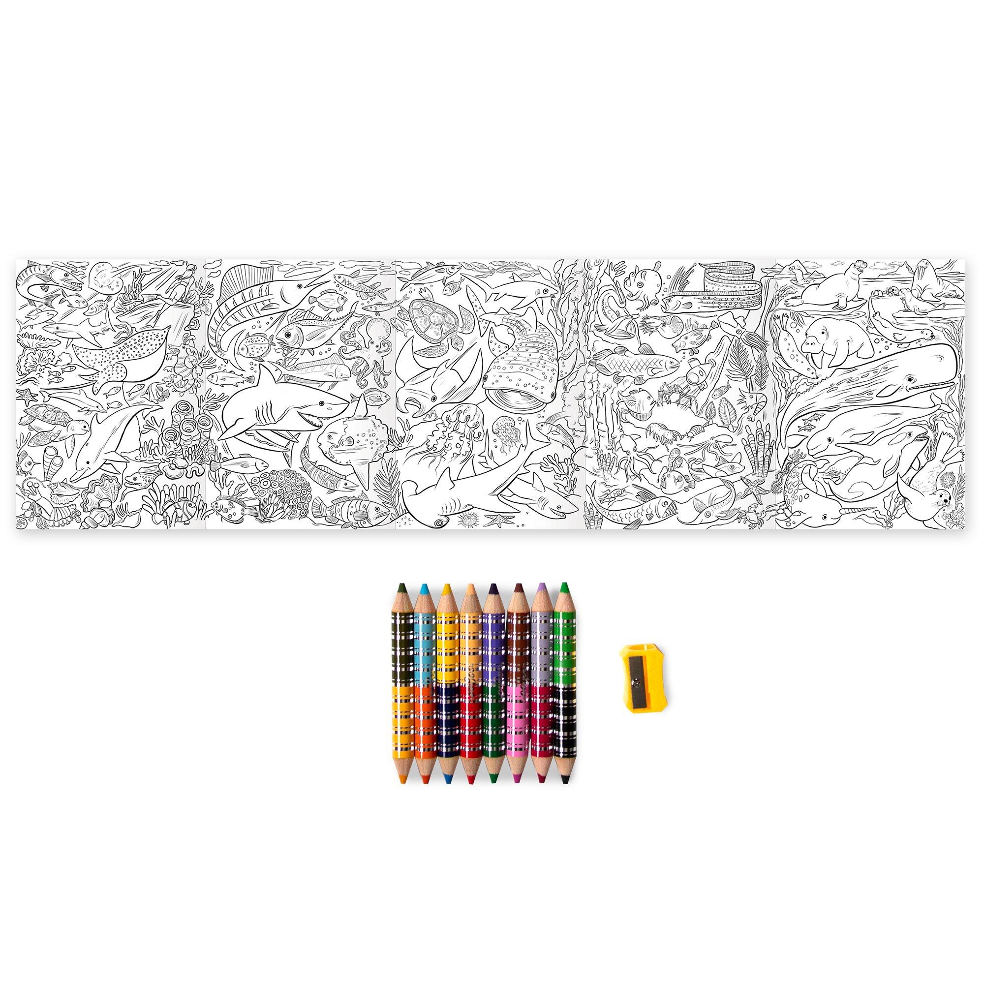 • INCLUDES MINI MURAL: Features a fold-out undersea illustration (17.5″ x 5″) packed with marine life to color. Providing a detailed canvas for creative expression and hours of fun.