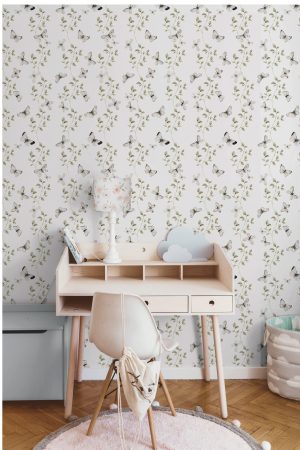 Who doesn’t feel positive after seeing a butterfly float by? This retro-style pattern adds a delicate dose of optimism to any wall it sits on.