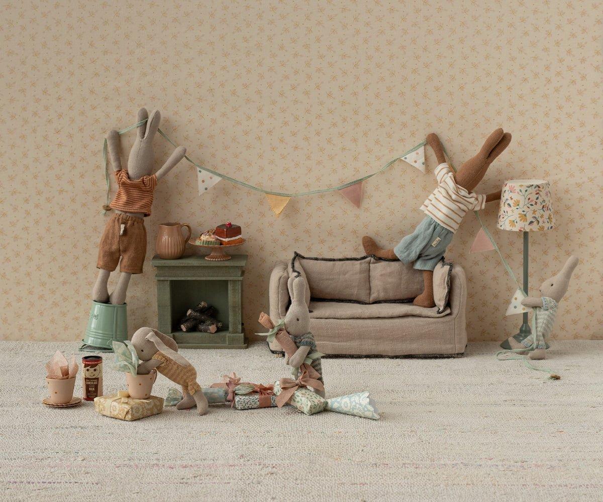 This little set of 3 delicious cakes on a beautiful decorated cakestand in rose color is a must have. The cakes are thoroughly decorated by hand. The cake set is made in size mini for Teddy family and Bunny & Rabbit size 1 & 2.
