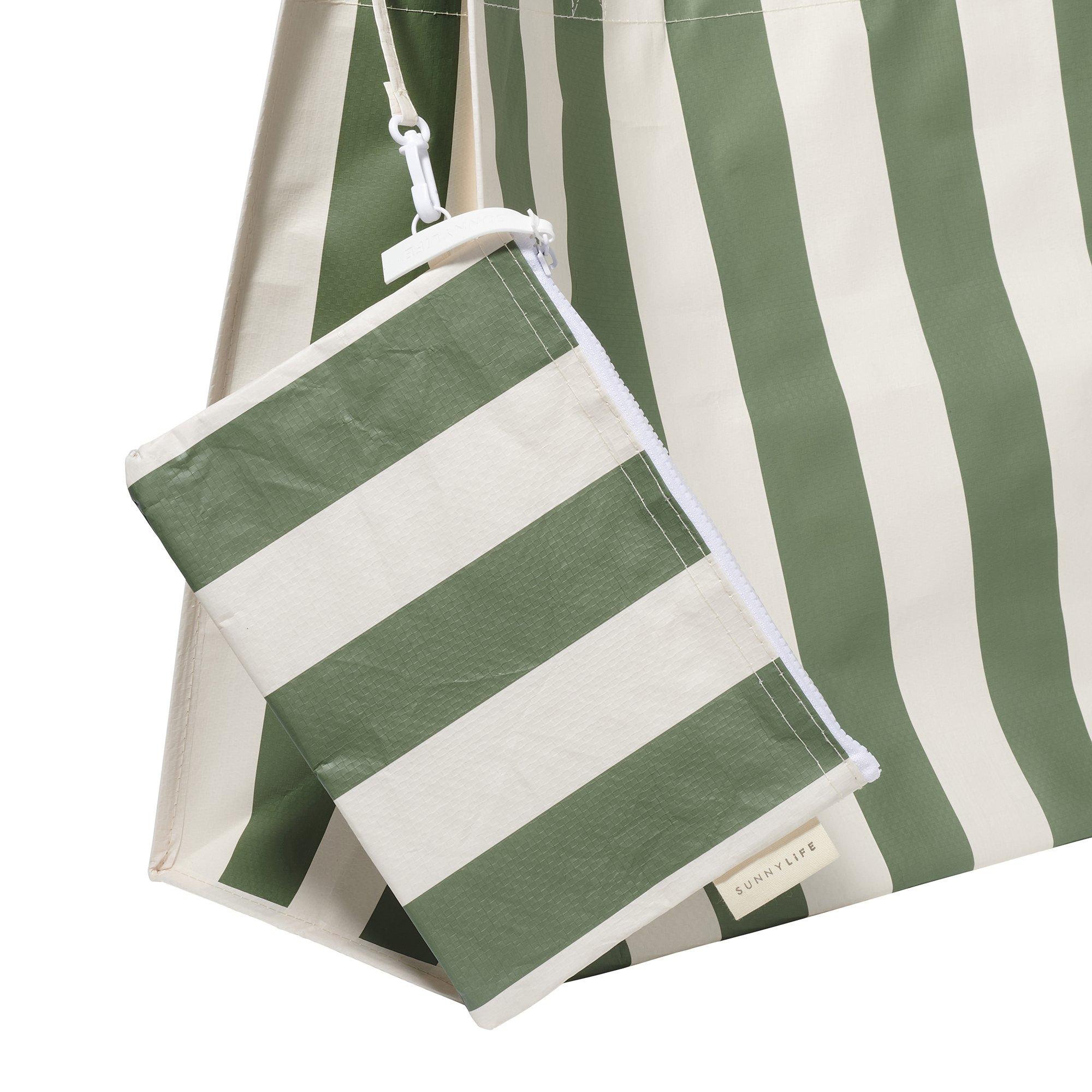 Live your best beach life with the SUNNYLiFE Carryall Beach Bag, perfect for carrying all your essentials. Designed to hold up to 7kg/15lbs, it’s both spacious and practical for beach days, poolside lounging, and beyond. Made from waterproof material to protect your belongings from sand and water, ensuring durability for all your outdoor activities. The bag also boasts double cotton straps for easy carrying. Includes a convenient detachable pouch for easy organization of smaller items, adding extra storage space and functionality. With drainage holes at the base, it keeps sand and water from collecting, making it ideal for your outdoor adventures. Lightweight and collapsible for easy storage when not in use, the Carryall Beach Bag is a must-have companion for any sunny outing.