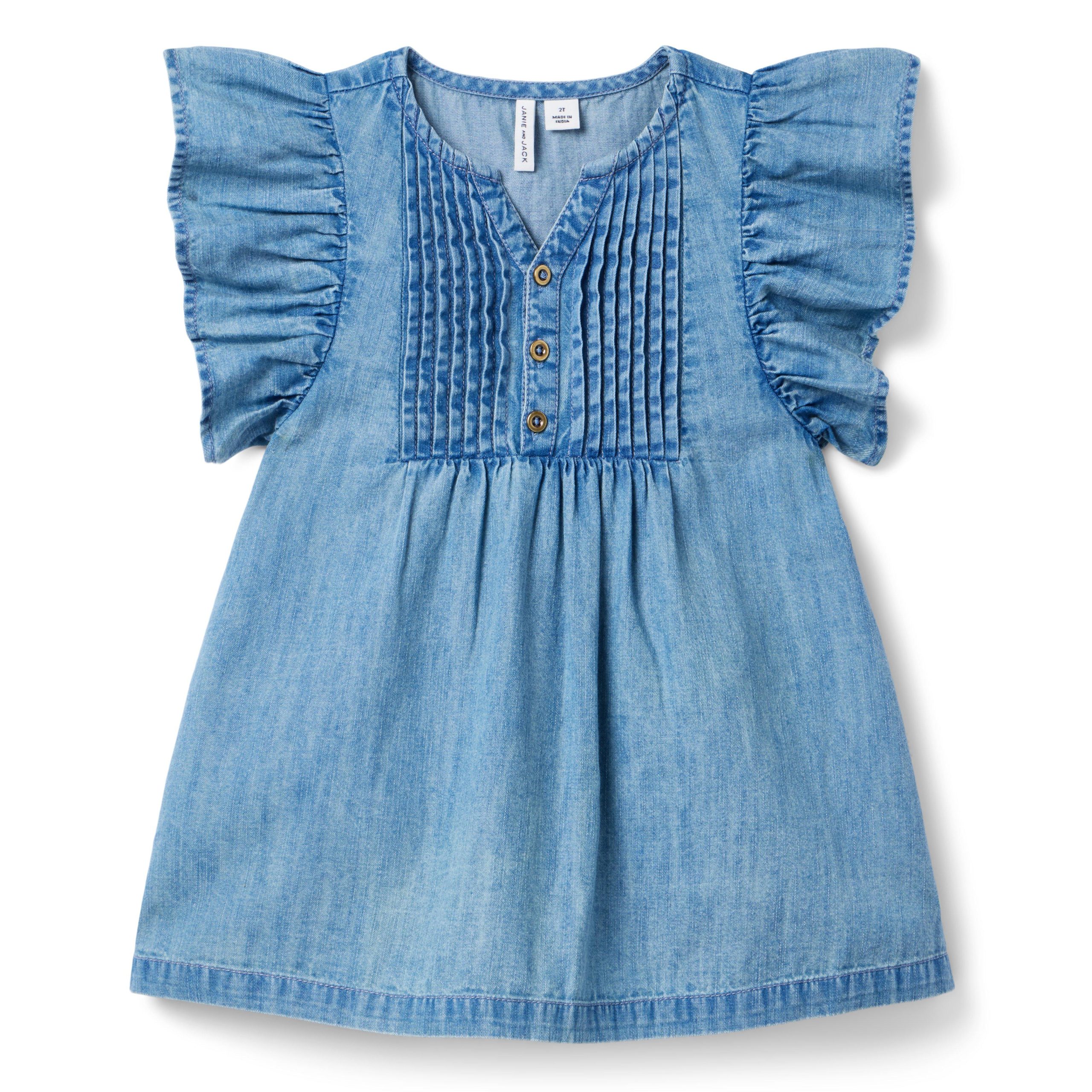 Chambray Ruffle Sleeve Dress