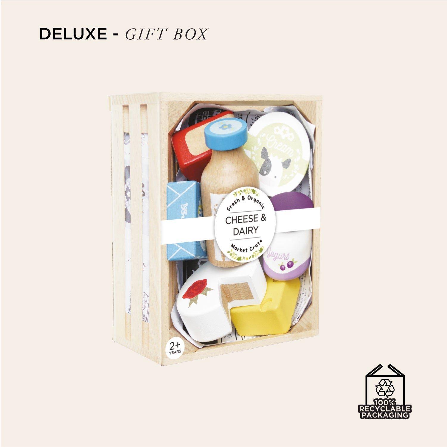 • A great addition to any child’s pretend play universe, this yummy cheese and dairy crate is just the ticket for inspired, imaginative fun.