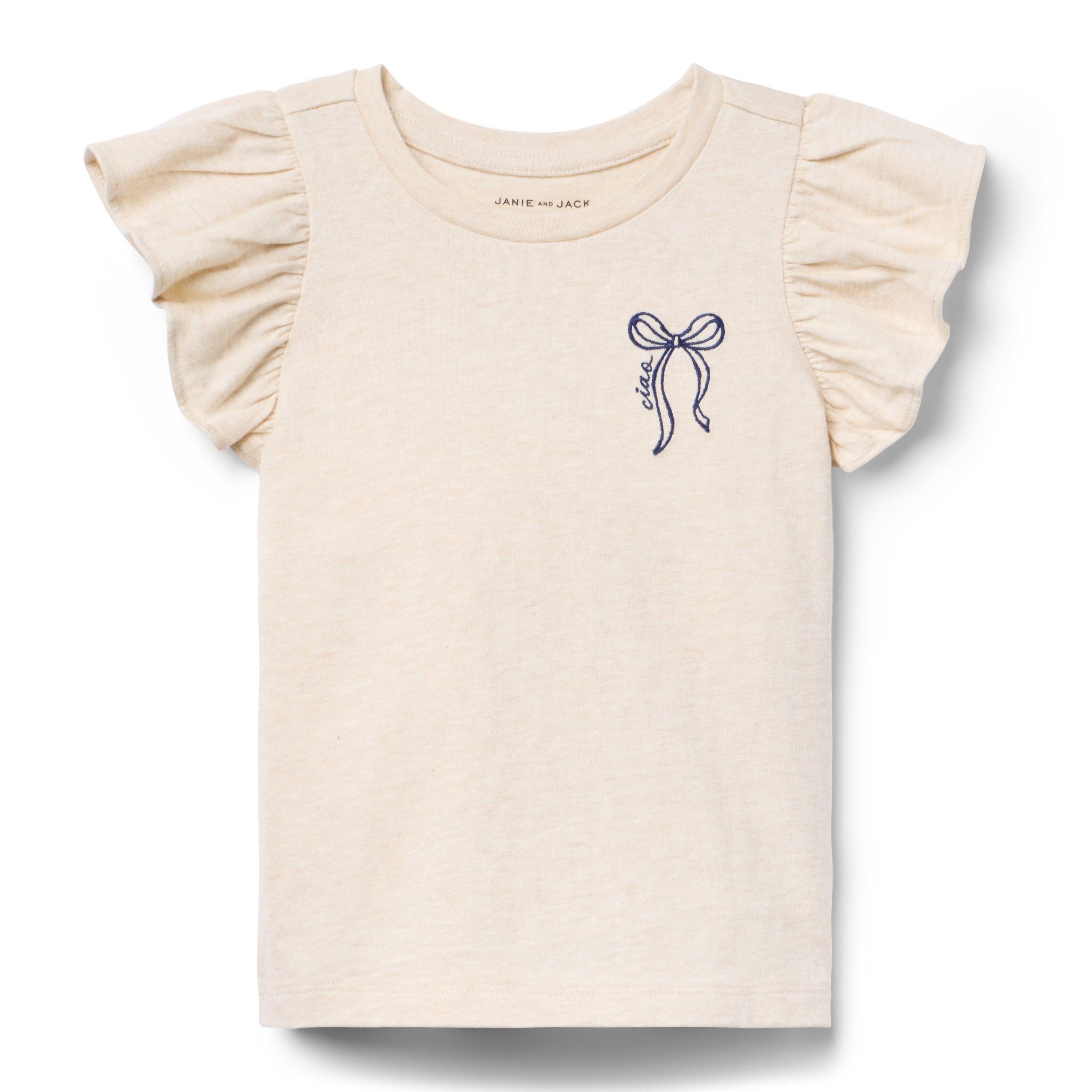 • A wear-with-everything top with an Italian-inspired twist. In soft cotton jersey with ruffle sleeves and an embroidered bow detail.