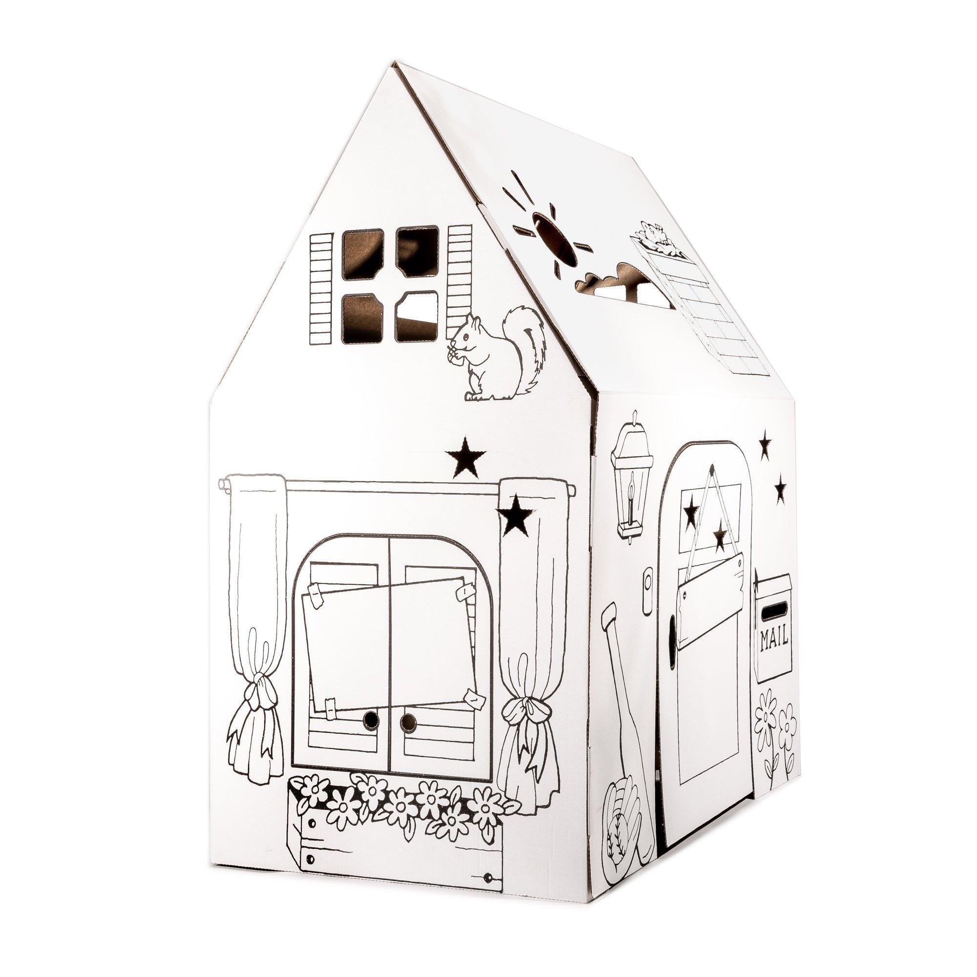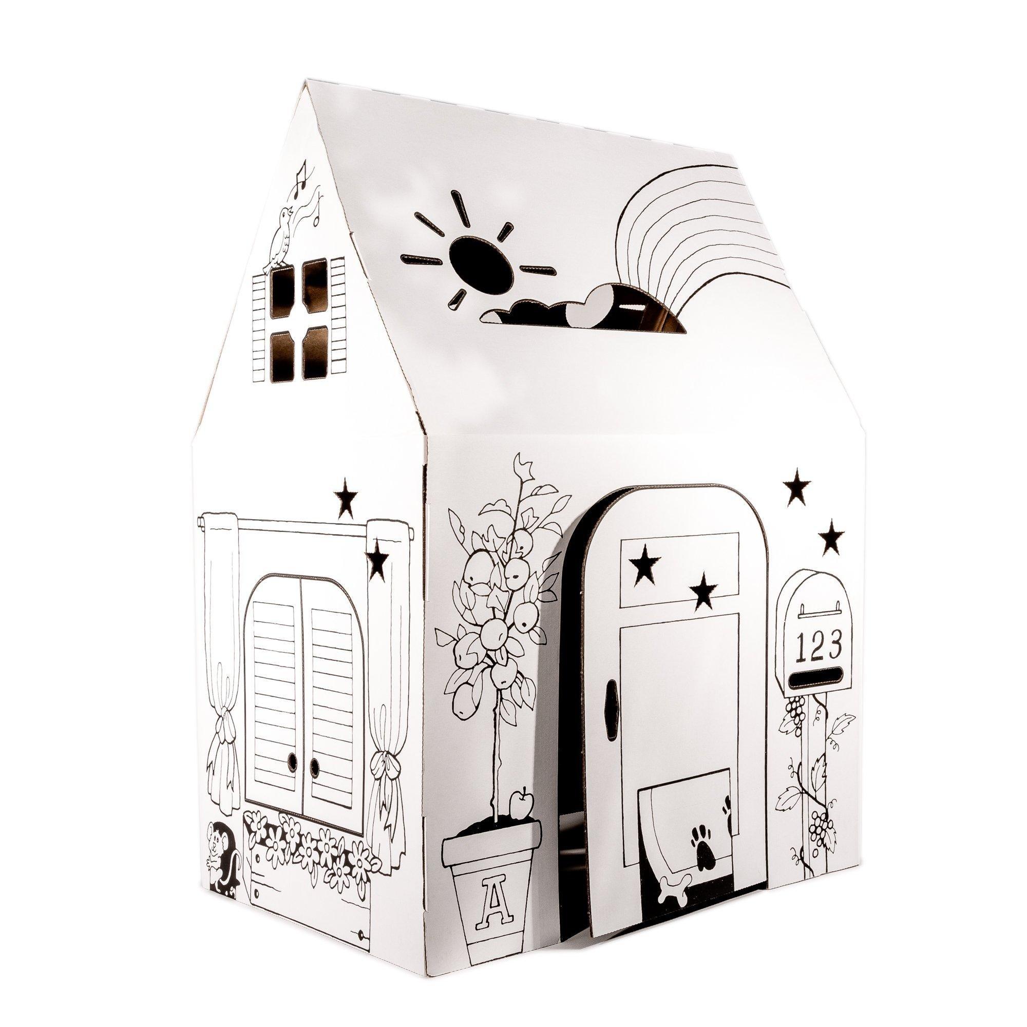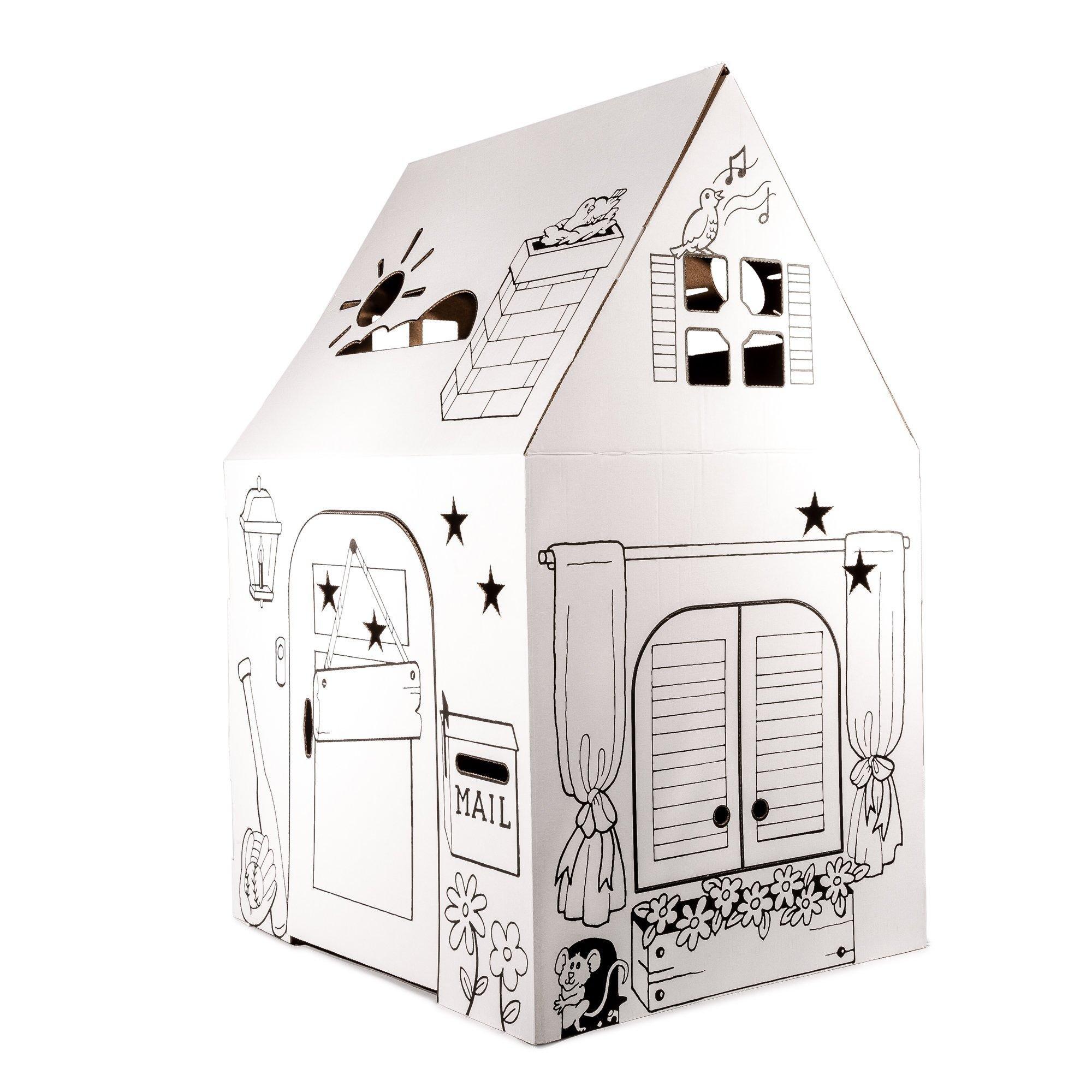 • Enjoy printed designs on our classic Easy Playhouse. Boys and girls will delight in personalizing this clubhouse. Easy Playhouse has created a cardboard playhouse that will tap into your children’s creative imagination. The product is built and designed with your kids in mind. Your children will enjoy hours and hours of fun with hundreds of ways to create and design each playhouse. Easy Playhouse provides creative play that keeps kids active both physically and mentally. Easy Playhouse is great for birthdays, holidays, parties and school projects because it’s easy to assemble, sturdy and durable. Decorate with markers, crayons, paint or stickers. Wave cut for child safety.