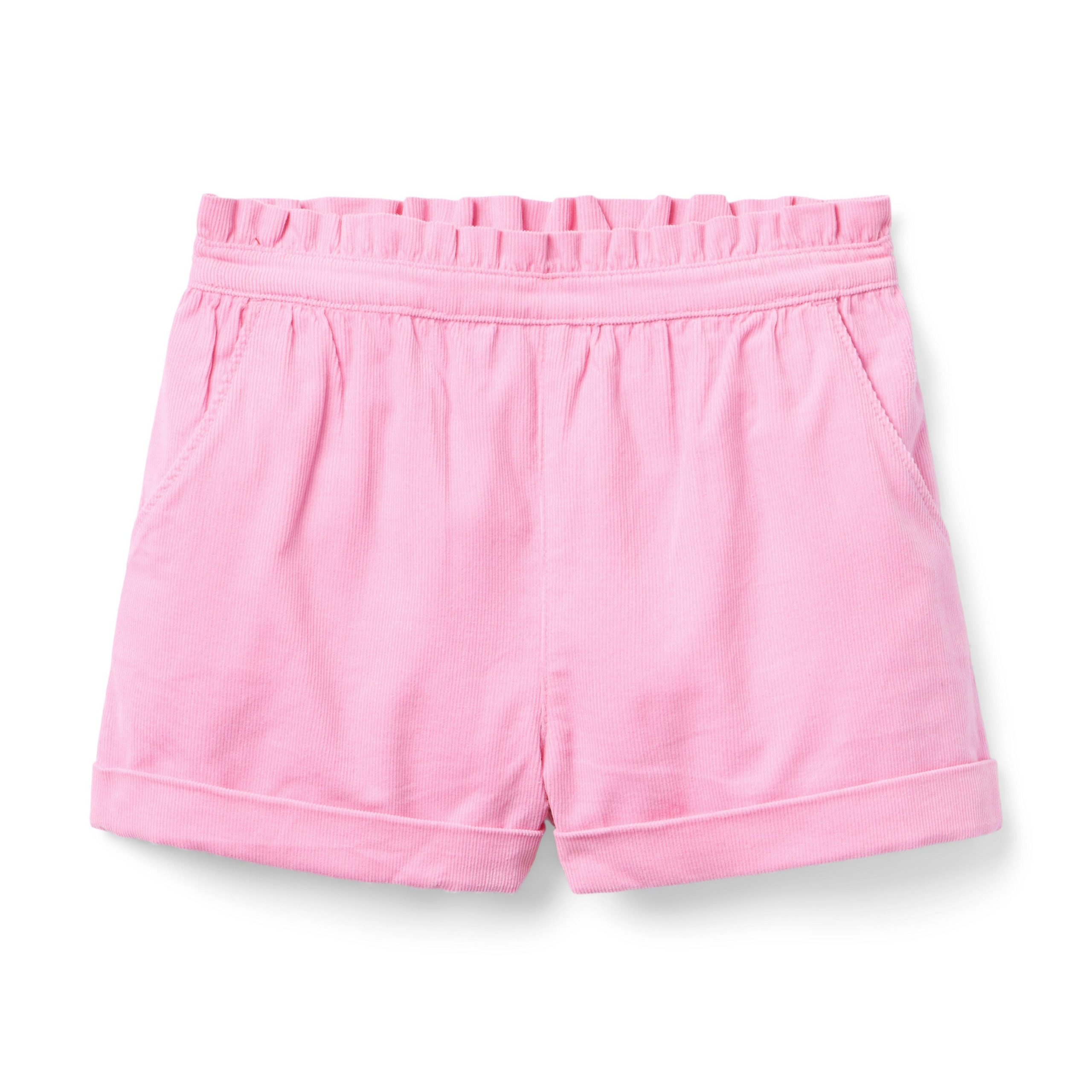 • A fashionable favorite in soft corduroy. Designed with a ruffle waist, cuffed hem and pockets, of course.