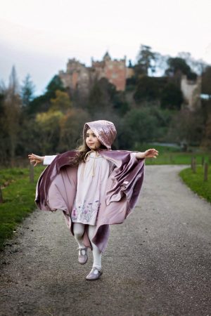 There is no way of knowing who your little one becomes today and which fantastic adventures he or she will take part in. That is exactly why you should prepare in advance for the roles of king, and queen, and dragon, and witch, and knight – to name just a few! Costumes are a must-have for theatre games, shows, costume balls, birthday parties and numerous photo shoots. A cape is a must-have if you want to play a queen, a sorceress, a fairy, a warlock, or want to go for a masked ball or trick-or-treating on Halloween. Simply put, it is essential for so many roles! You just don’t want to take it off! PART OF THE MAGIC STORIES COLLECTION Magic does not come just like that! It is obvious for all fairies and wizards. Casting magic spells requires suitable equipment such as magic capes, crowns, hoods and wands. Since every land has its own magic rules, you need to be prepared for virtually anything. Take our magic cape and create a sorceress’ or wizard’s set! A cape with a deep hood, made of soft plum velour. Great as a costume for a ball, Halloween or carnival. As it often becomes a permanent part of the outfit, it was provided with arm holes to facilitate play and daily activities Velour fabric with sequins. Length measured from the hood: 24 in front, 25.5 in back. Hood height: 13 in. Suggested size between 43 and 53 in Length (measured from the hood): 24 in front, 25.5 in back.Hood Height: 13 in.Suggested size is between 43 and 53 in.