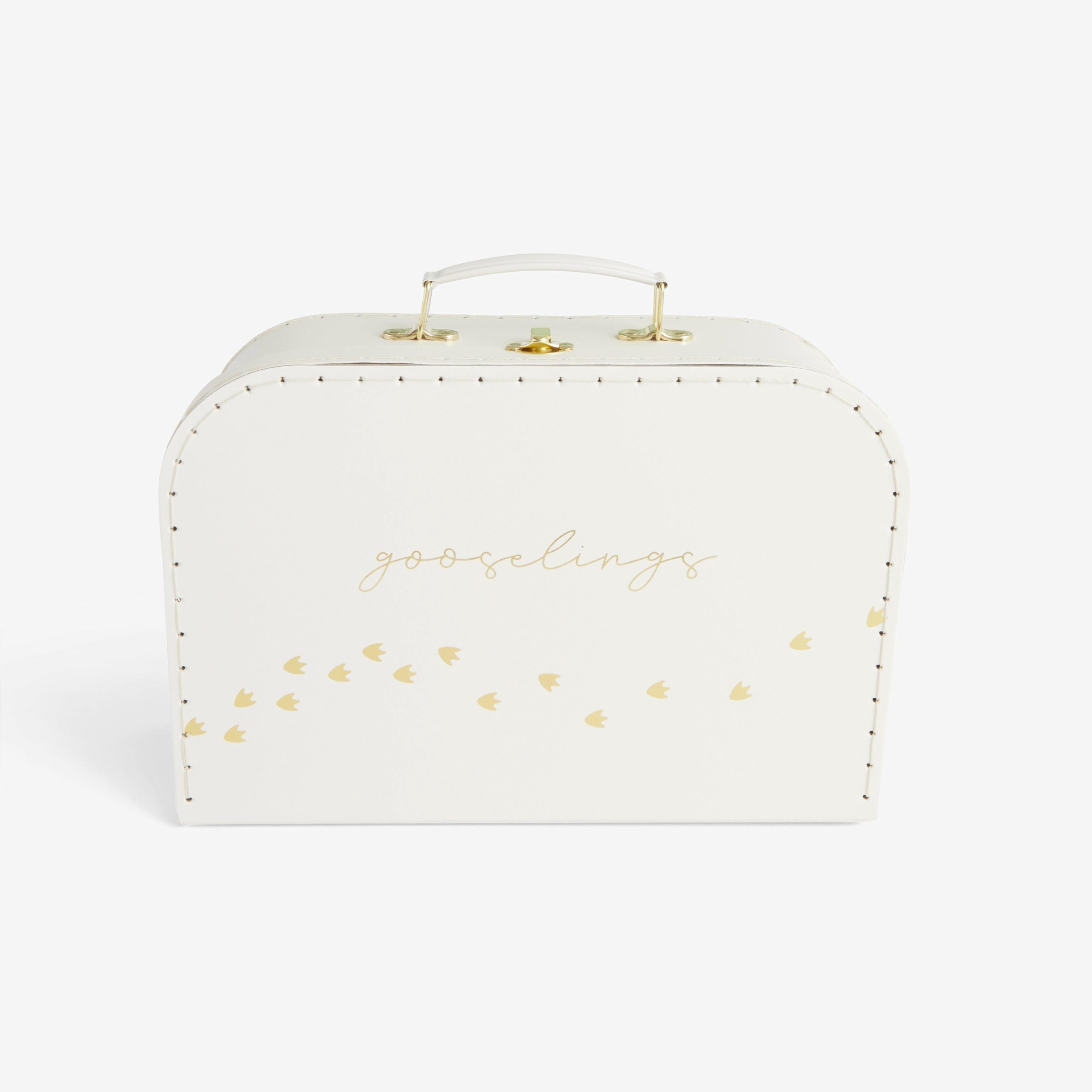 • Packaging: Charming suitcase for storing toys and heirlooms.