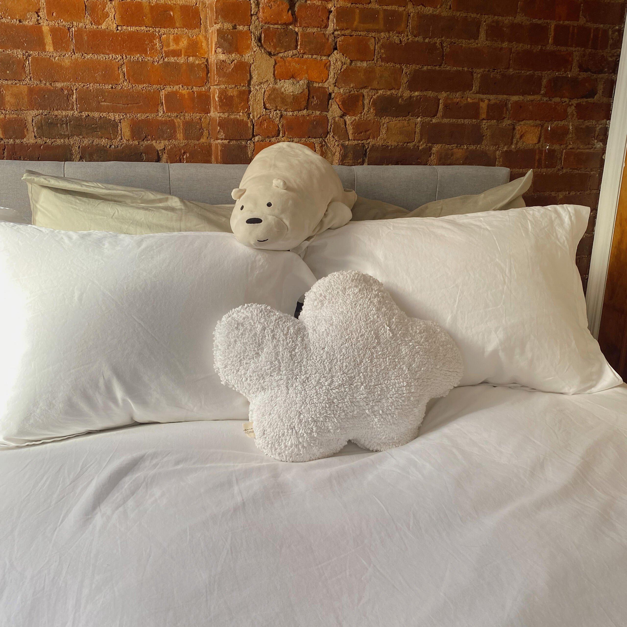 This bouncy cotton cloud is nothing less than a comfy throw pillow. Filled cushion shaped as a cloud with base in White colour using loop technique.
