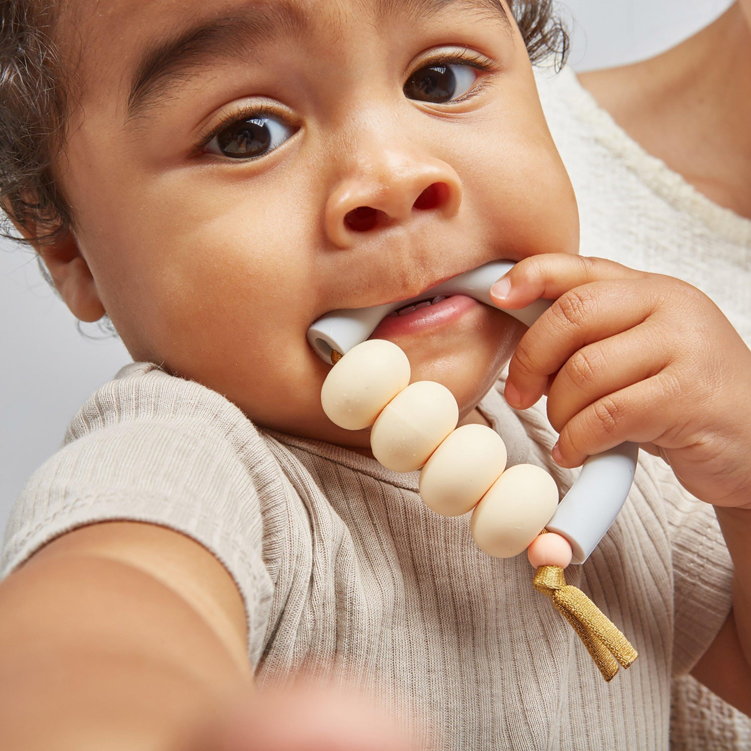 Inspired by the artful shapes that make up the world around us, the Arch Teether invites parent and child to look closer, stay curious, and explore. Featuring dramatic custom beads in brilliant colors, Arch builds a bridge between the every day to the extraordinary, enchanting parents, little ones, and art lovers of all kinds.