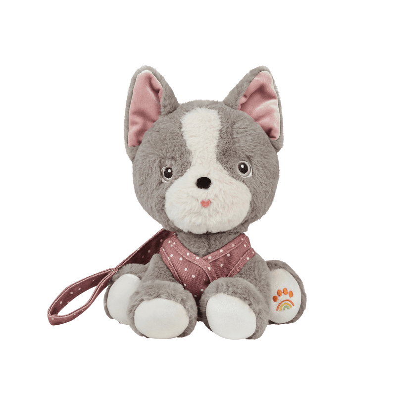 Gizmo’s ultra-soft fur makes him the ultimate snuggle buddy if you’re having a ruff-day or just need some puppy love! Gizmo has a secret obsession to treats, often enjoying a magnetic bone. Gizmo comes ready to play, walk and snack, with a removable canvas harness, lead, and bone treat – because every good dog needs a treat, right!