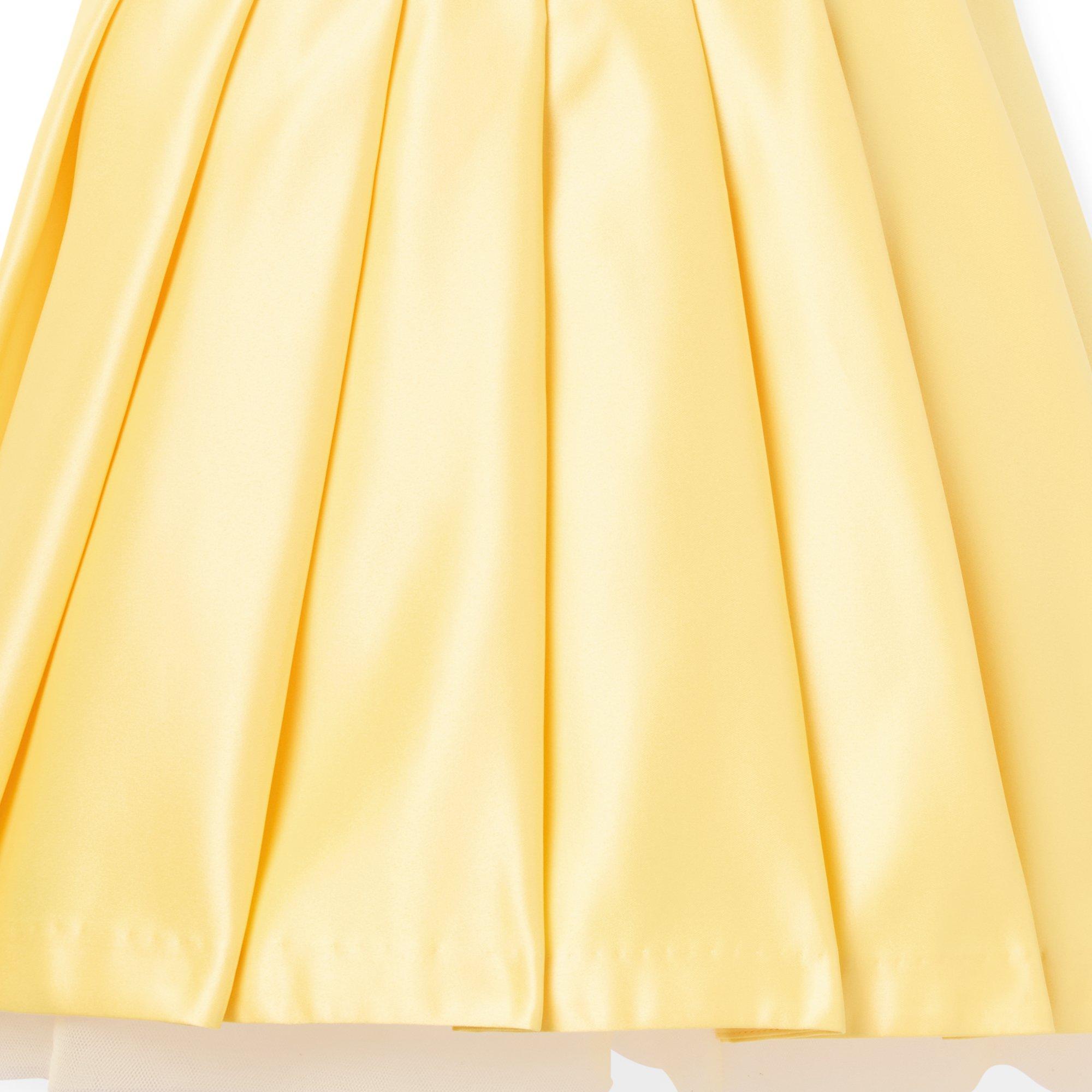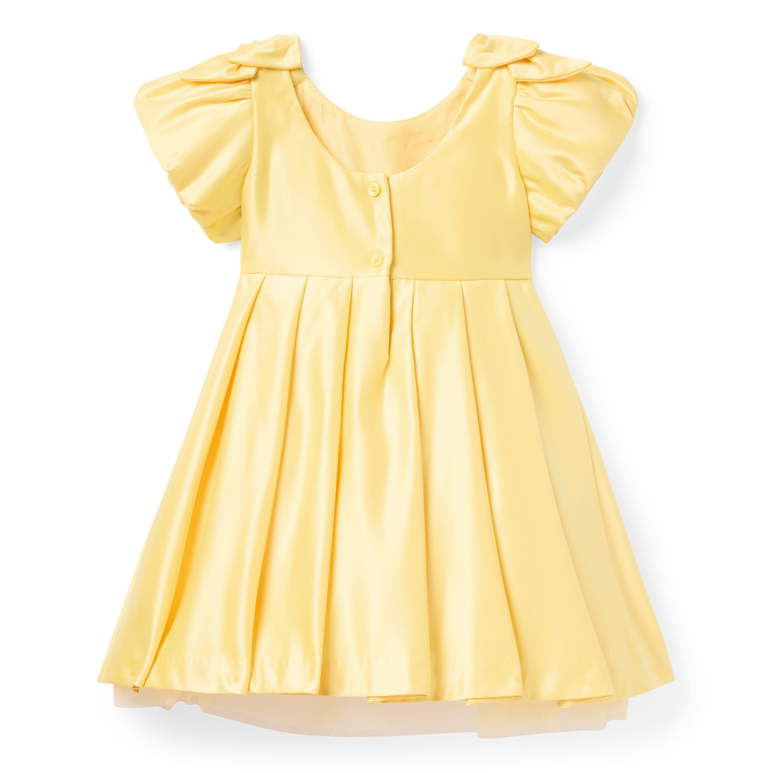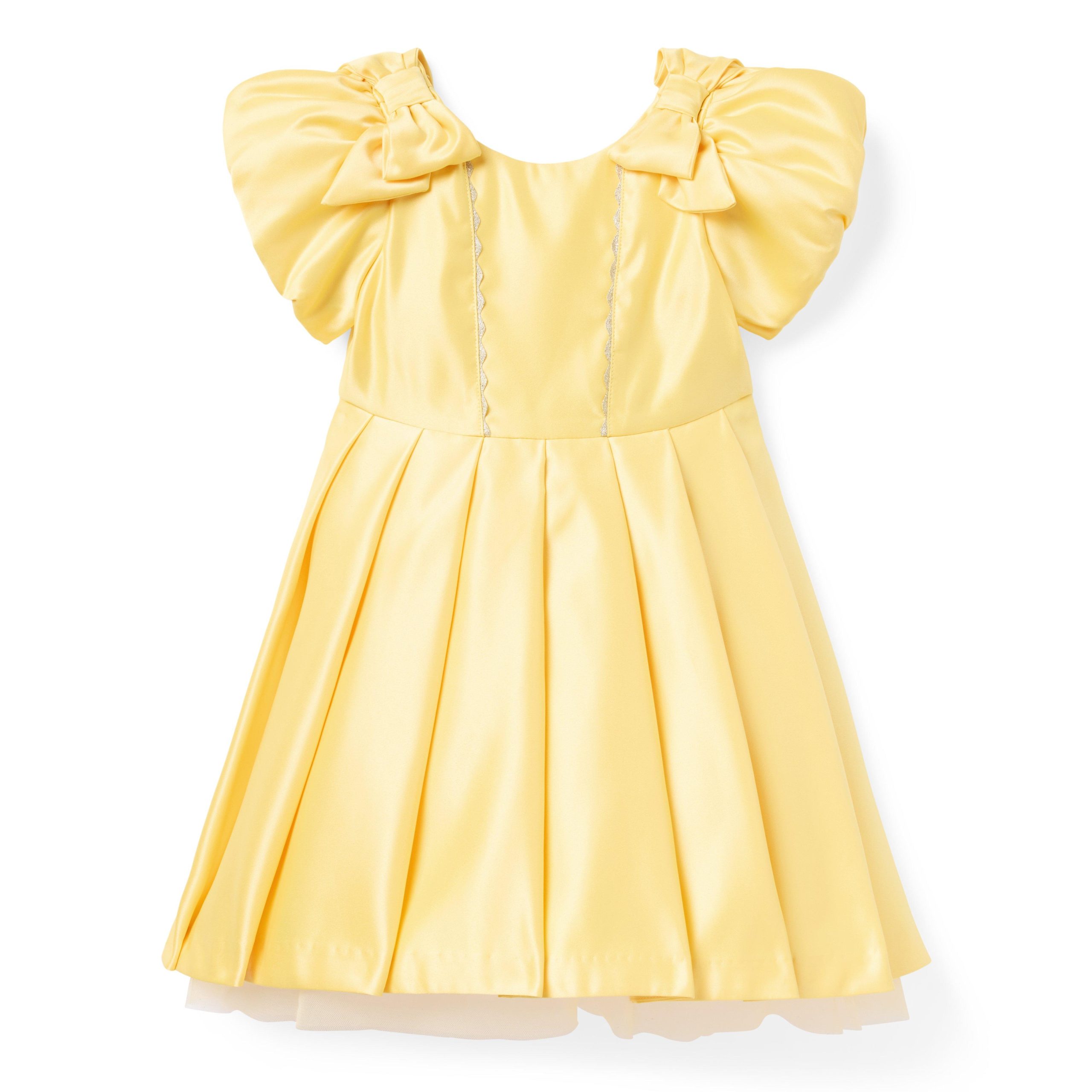 • Inspired by Disney’s Belle, this dress is one for the books. Featuring a pleated skirt, puff sleeves, shoulder bows and metallic ric-rac trim.