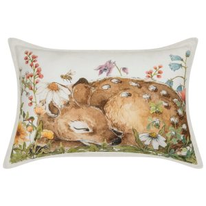 After a long journey across the forest, it’s time to take a break in a beautiful clearing Games and play may go on for hours and you never know where the adventure takes you! But if you need to rest or take a nap, it’s best to do it on a soft snug cushion… Decorative cushions by Moi Mili are beautiful, very comfortable and practical. They are a lovely decoration of the child’s room, making it extremely cosy and creating perfect conditions for naps and – obviously – play! PART OF THE FOREST FRIENDS COLLECTION The cushion is part of our autumn collection, born out of love for hiking in the forest and sleeping in a tent in the wild. Designed in collaboration with illustrator Iwa Kowalska, the tepee fits perfectly into the autumn mood and introduces a unique atmosphere in the room. Make your own cushion compositions of the available patterns! A cushion with forest motif. It is carefully made of high quality cotton fabric. Filled with high quality anti-allergic silicone fibre balls. You can safely wash it in a washing machine, the filling stays fluffy and elastic. Fabric: 1% OEKO-TEX® certified cotton. Washing temperature: up to 86°F. Size: 15 x 15 in. This fluffy cushion is carefully sewn from high-quality cotton and features a fabulous watercolor sleeping doe print created by the illustrator Kasia Goraj-Stróżyńska. Also features a zipper for easy removal when it’s time for a wash.