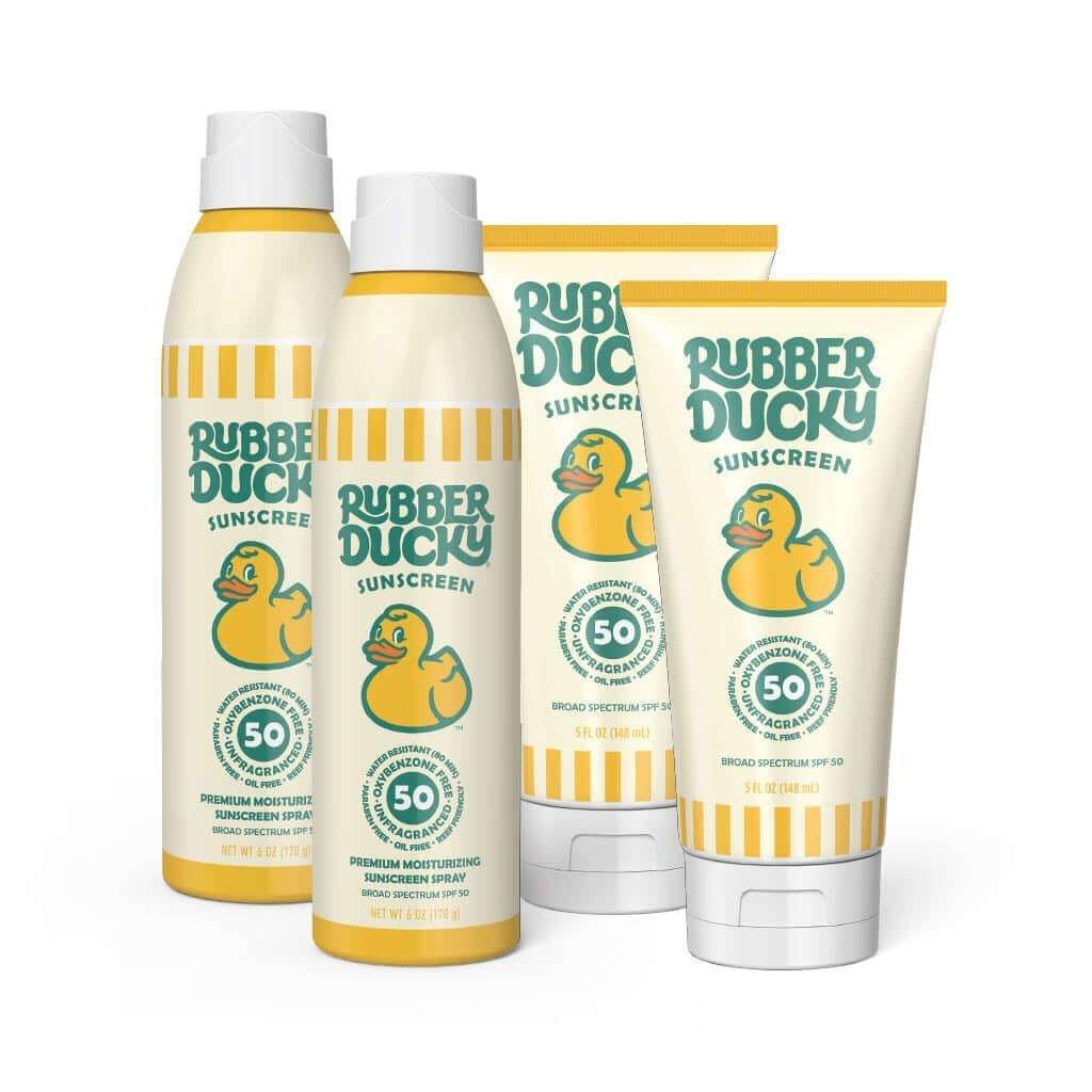 Rubber Ducky’s Dynamic Duo sunscreen bundle will get you rolling into the sunshine with two great options. This bundle comes with two of our 6oz SPF 50 Sprays and two of our SPF 50 lotions (5 oz. tube).