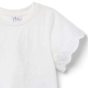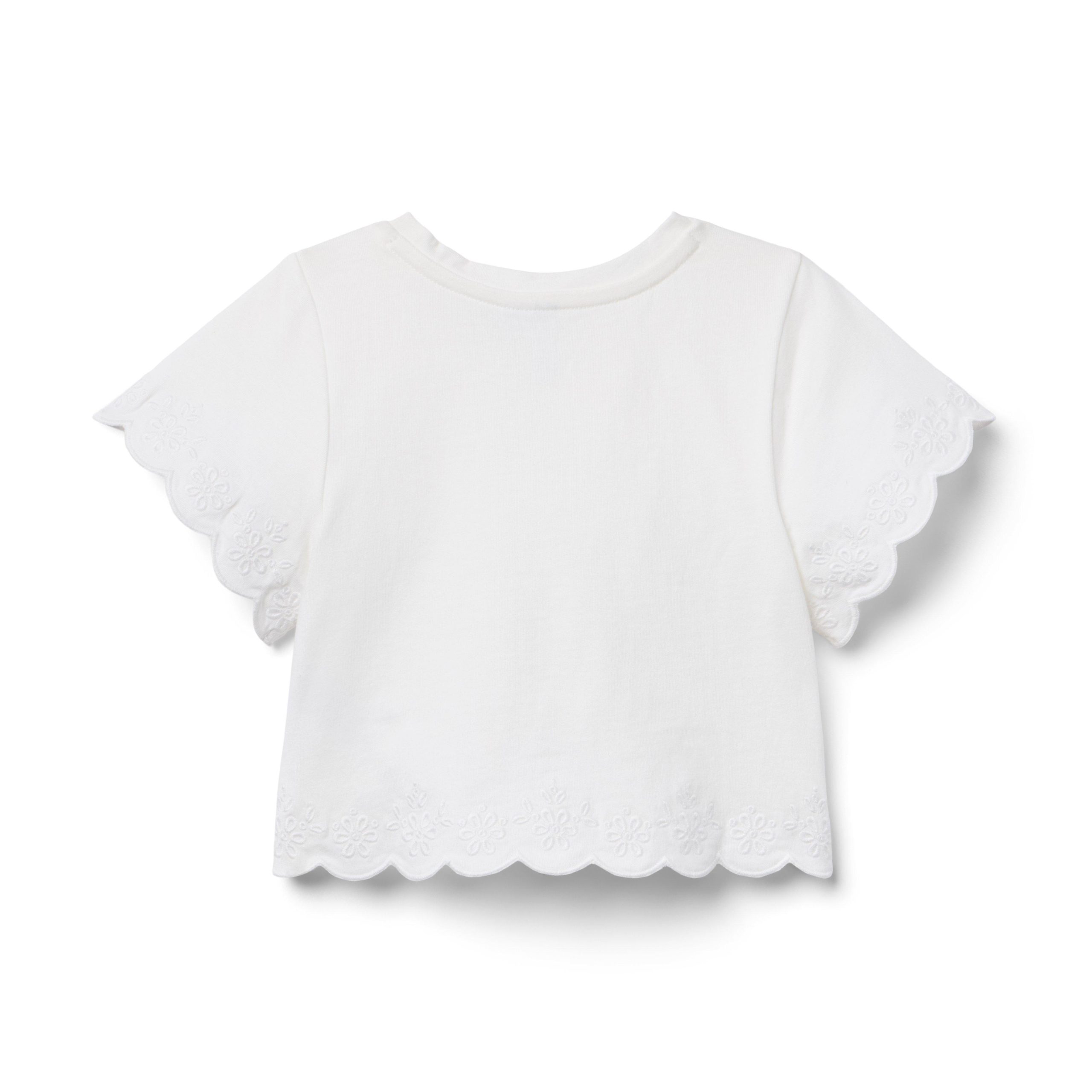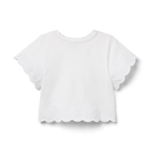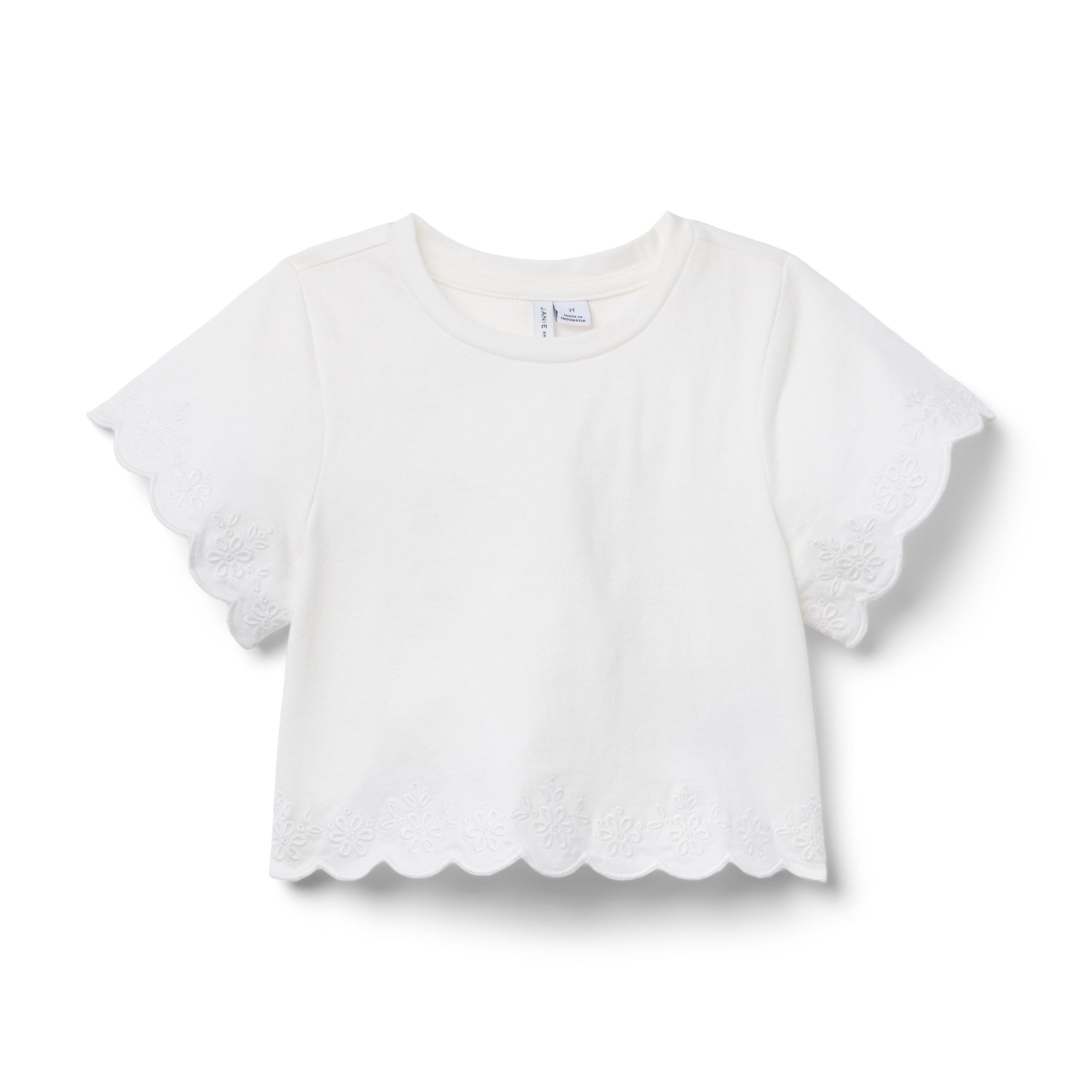 • An effortless style that rises to the top with its embroidered eyelet florals and scalloped sleeves and hem.