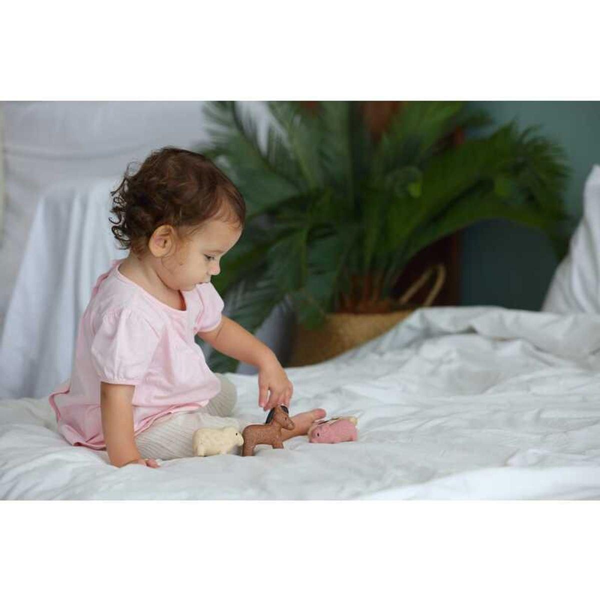 Create a countryside scene at home with these cute wooden animals! This set comes with a pig, sheep, cow and horse.