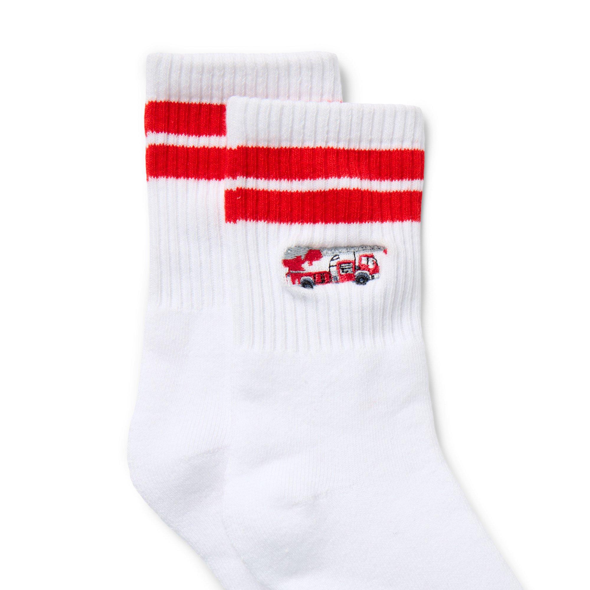 • Firetrucks and stripes bring the fun to our classic crew socks. Soft and stretchy for all-day comfort.