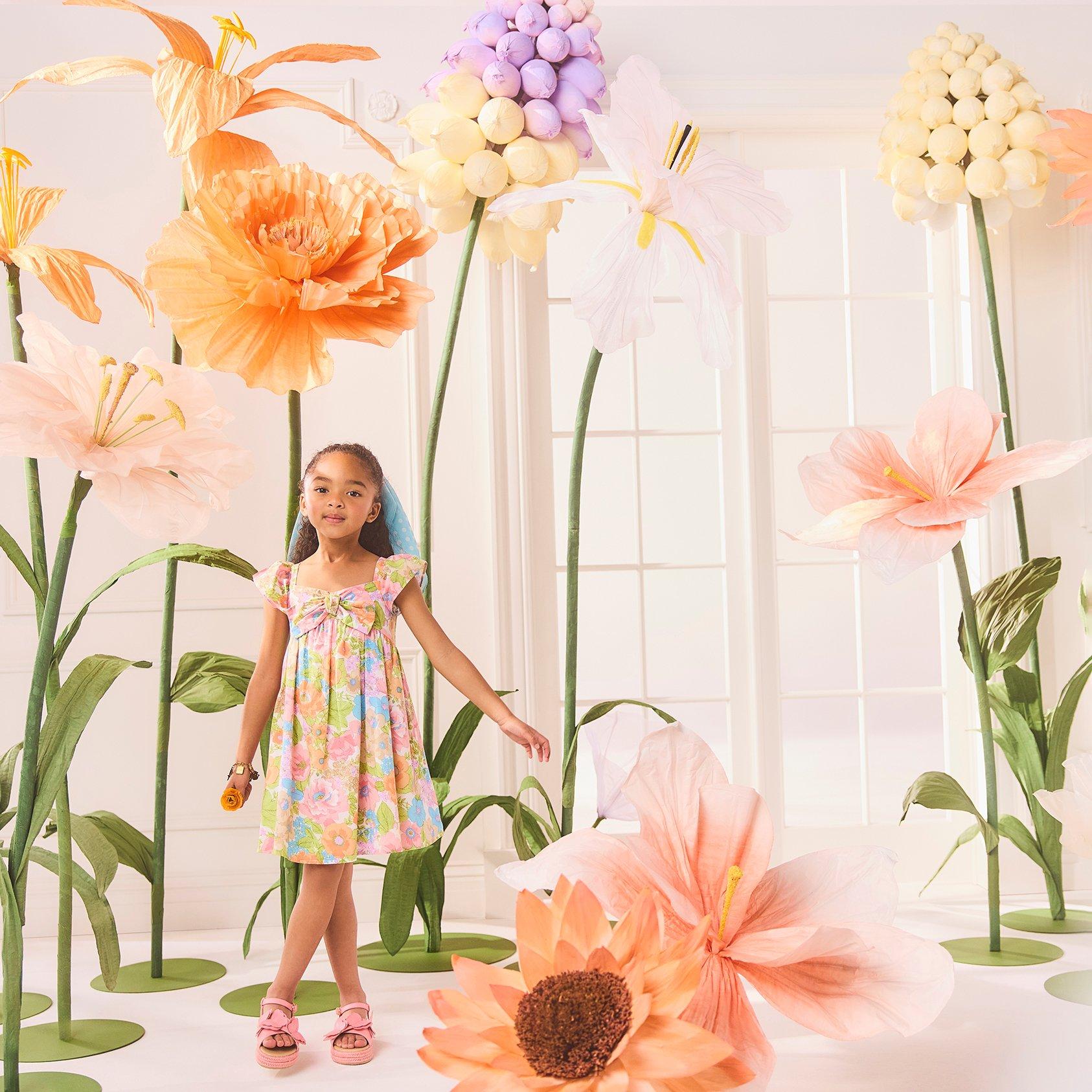 • Fresh florals to brighten every day. Our pure cotton dress features flutter sleeves and a sweetheart neckline with a knotted bow detail.