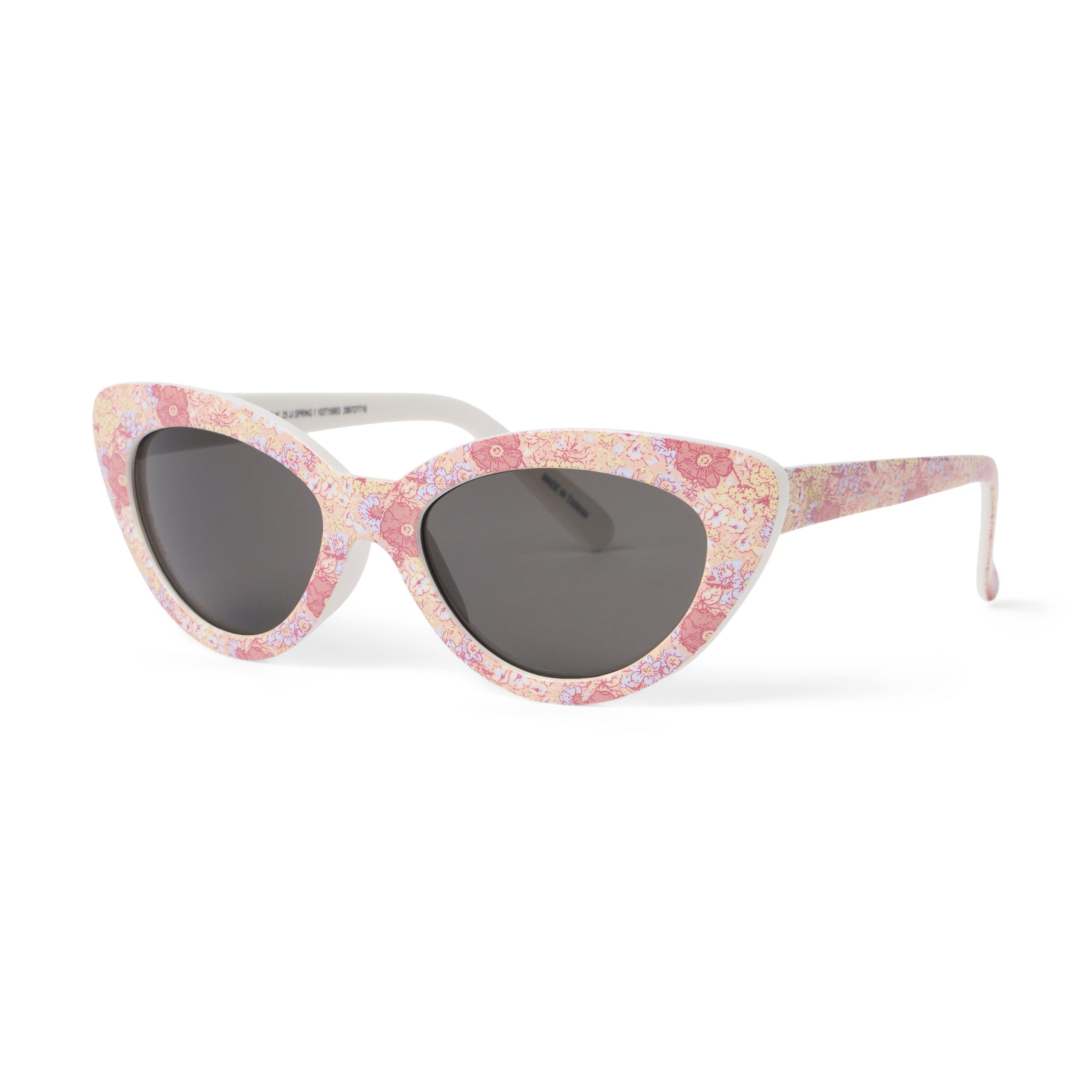 • Fresh florals are in sight with our cat eye sunglasses. Featuring tinted UV lenses with solid white flexible rubber arms on size 0-2.