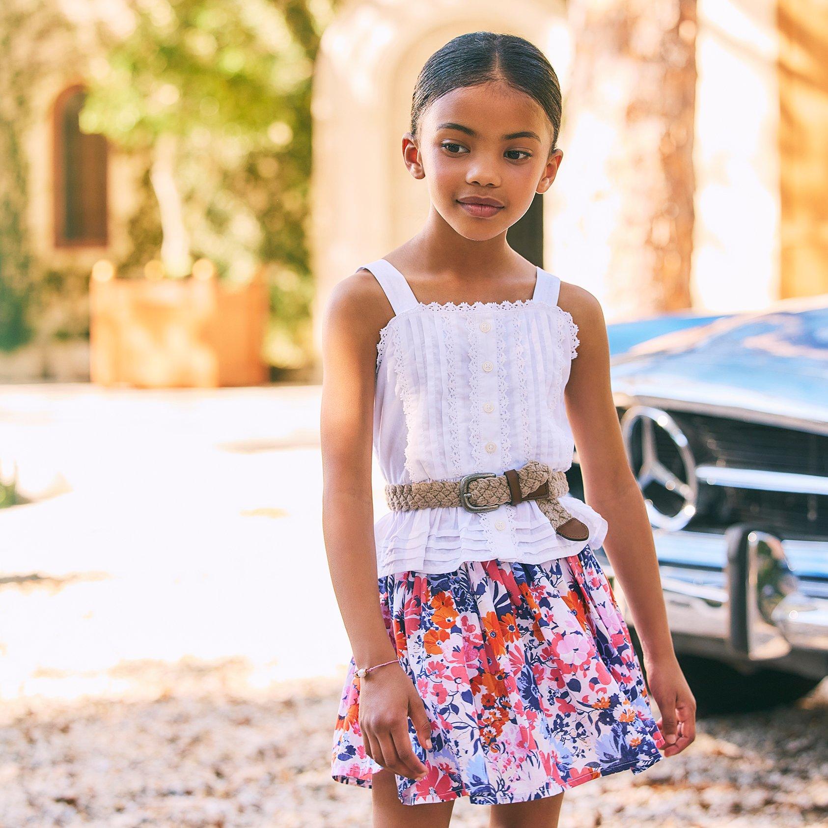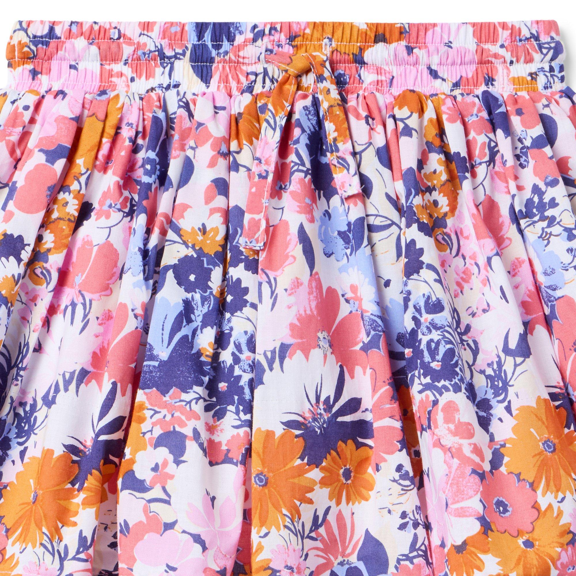 • Take this floral favorite for a spin. Designed in soft cotton with a drawstring waist and shorts underneath, it’s perfect for every adventure.