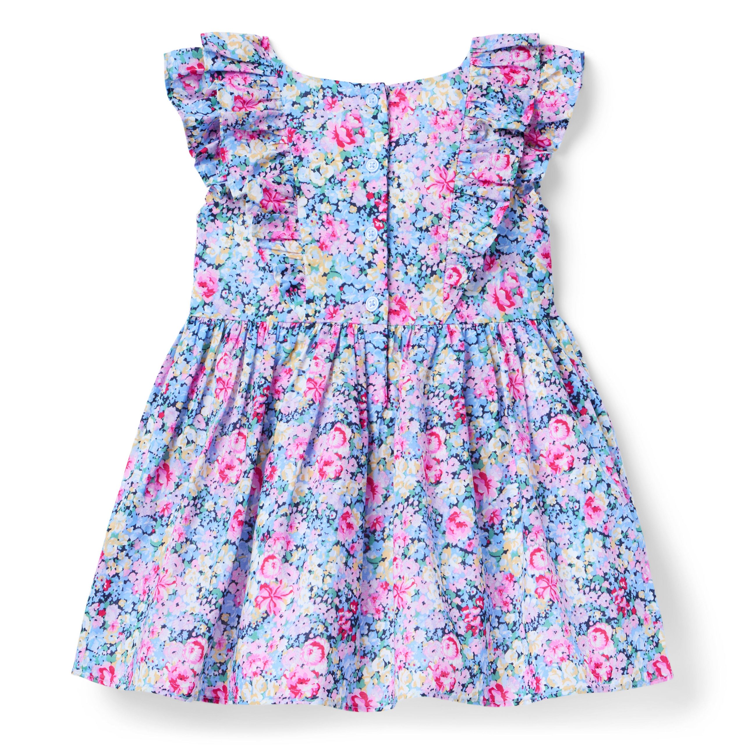 • Ruffles and florals? Two of our favorite things. This pure cotton dress features both, plus a smocked detail at the bodice.