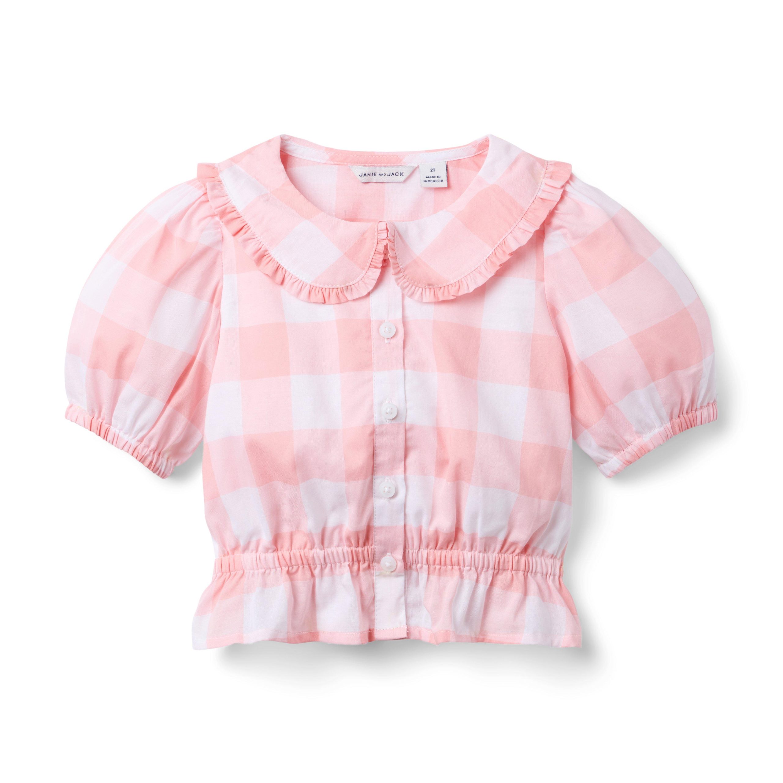 • Our gingham top is perfect for sunshine and picnics in the park. Designed in pure cotton with a peplum silhouette, a ruffle-trimmed collar and puff sleeves too.