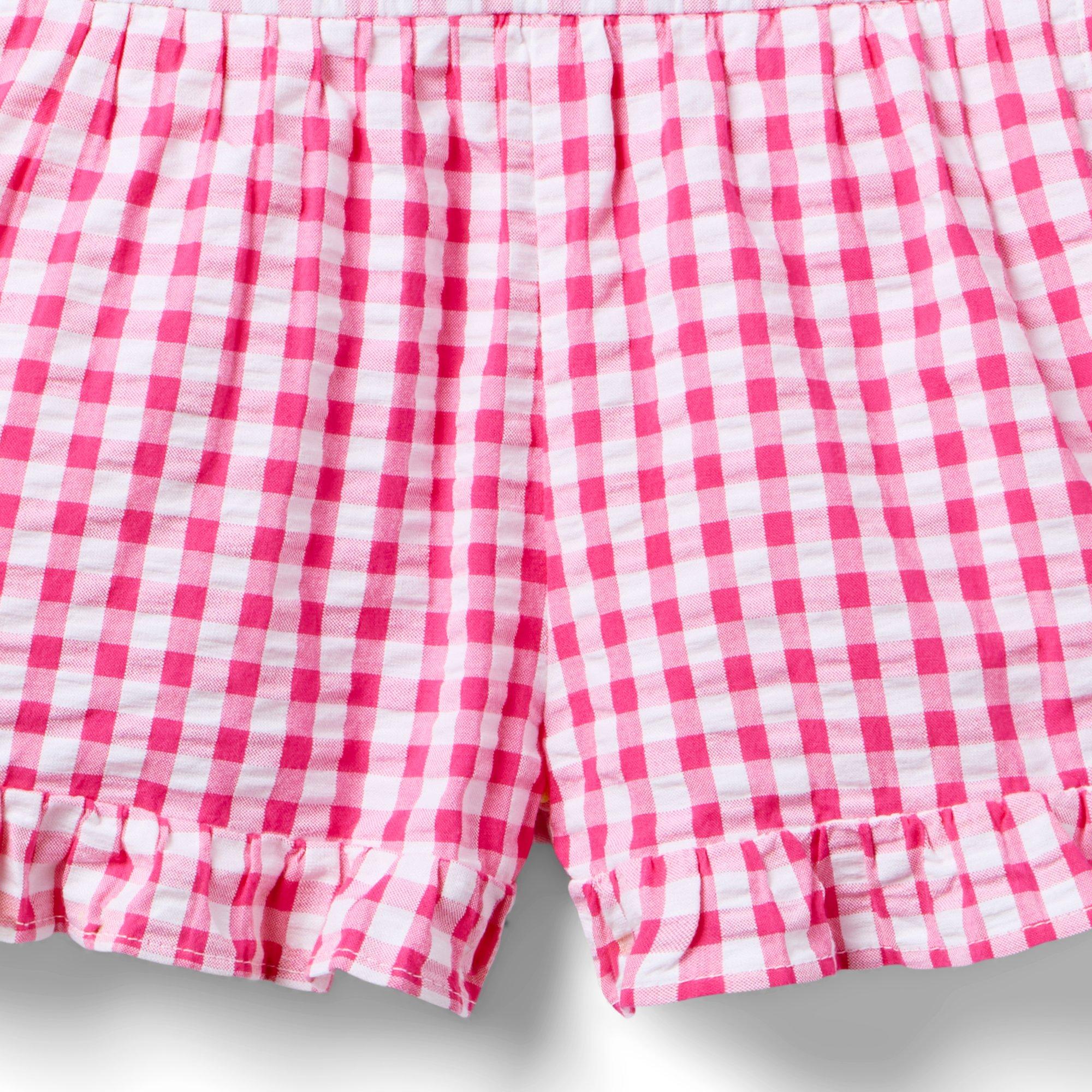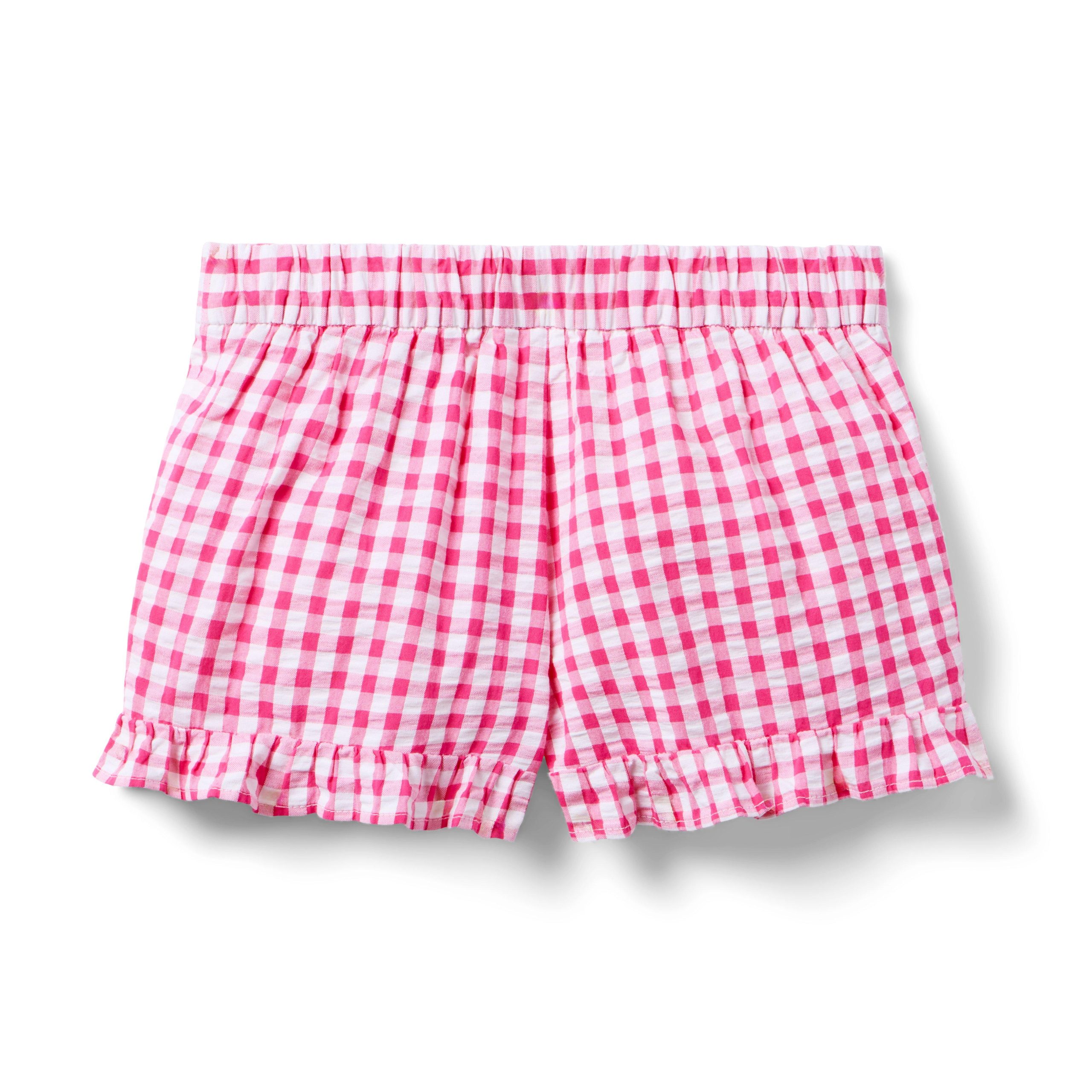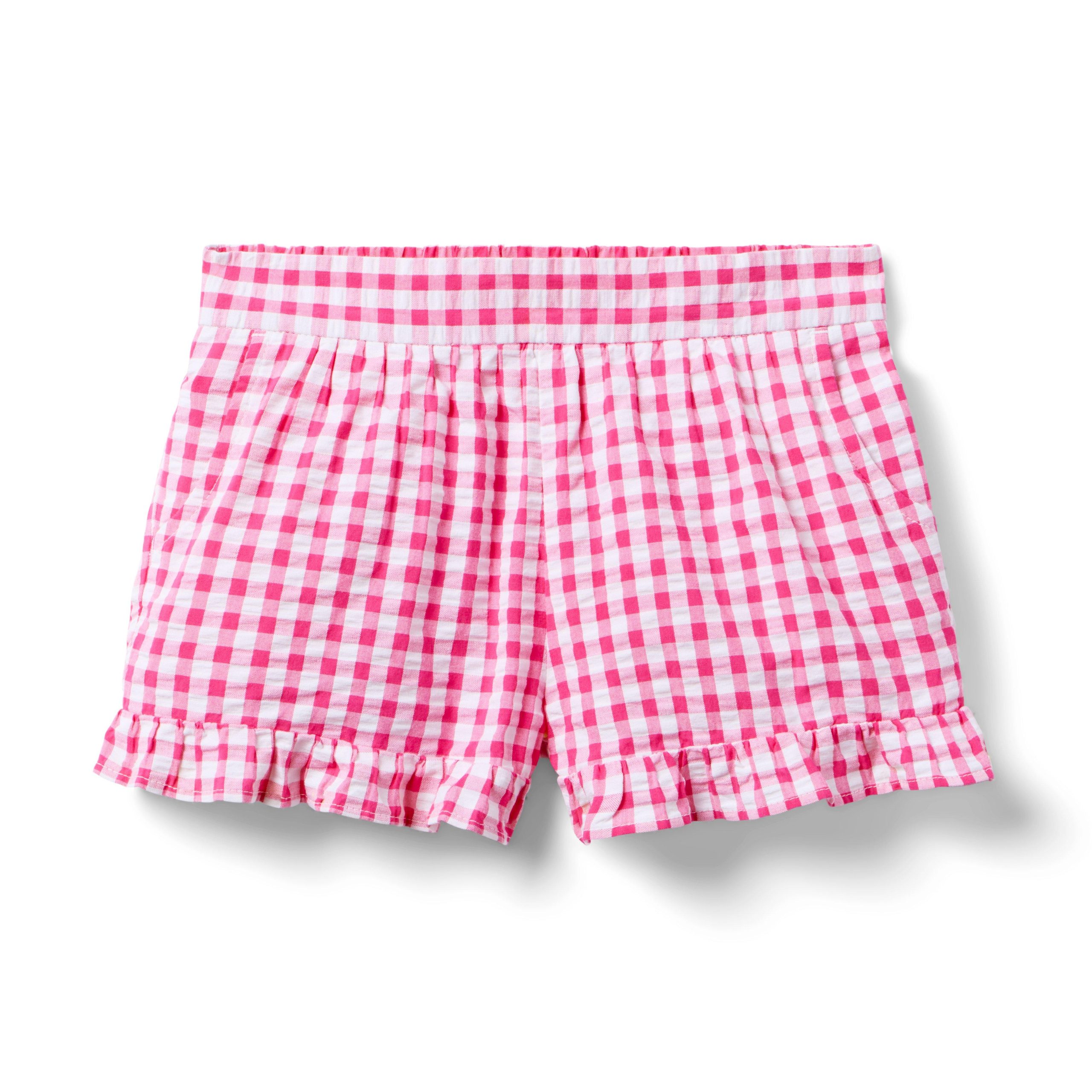 • Check every style box with our gingham short. Designed in pure cotton seersucker with a ruffle hem and pockets too.